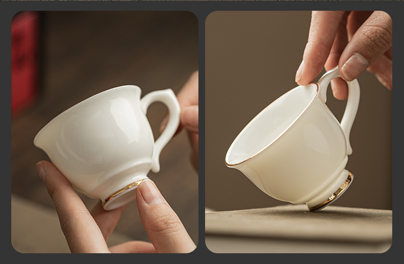 带把手小茶杯陶瓷品茗杯主人杯家用防烫待客杯子茶碗个人杯手柄杯