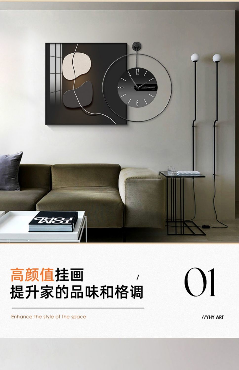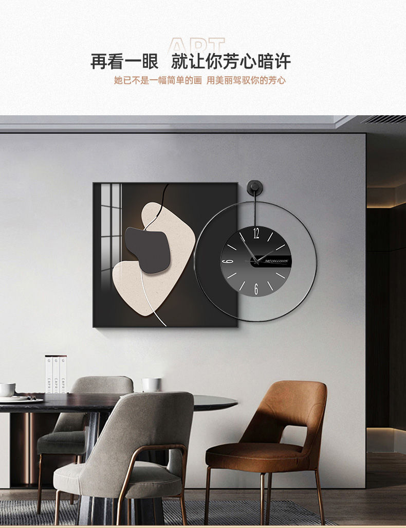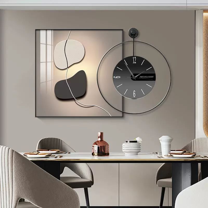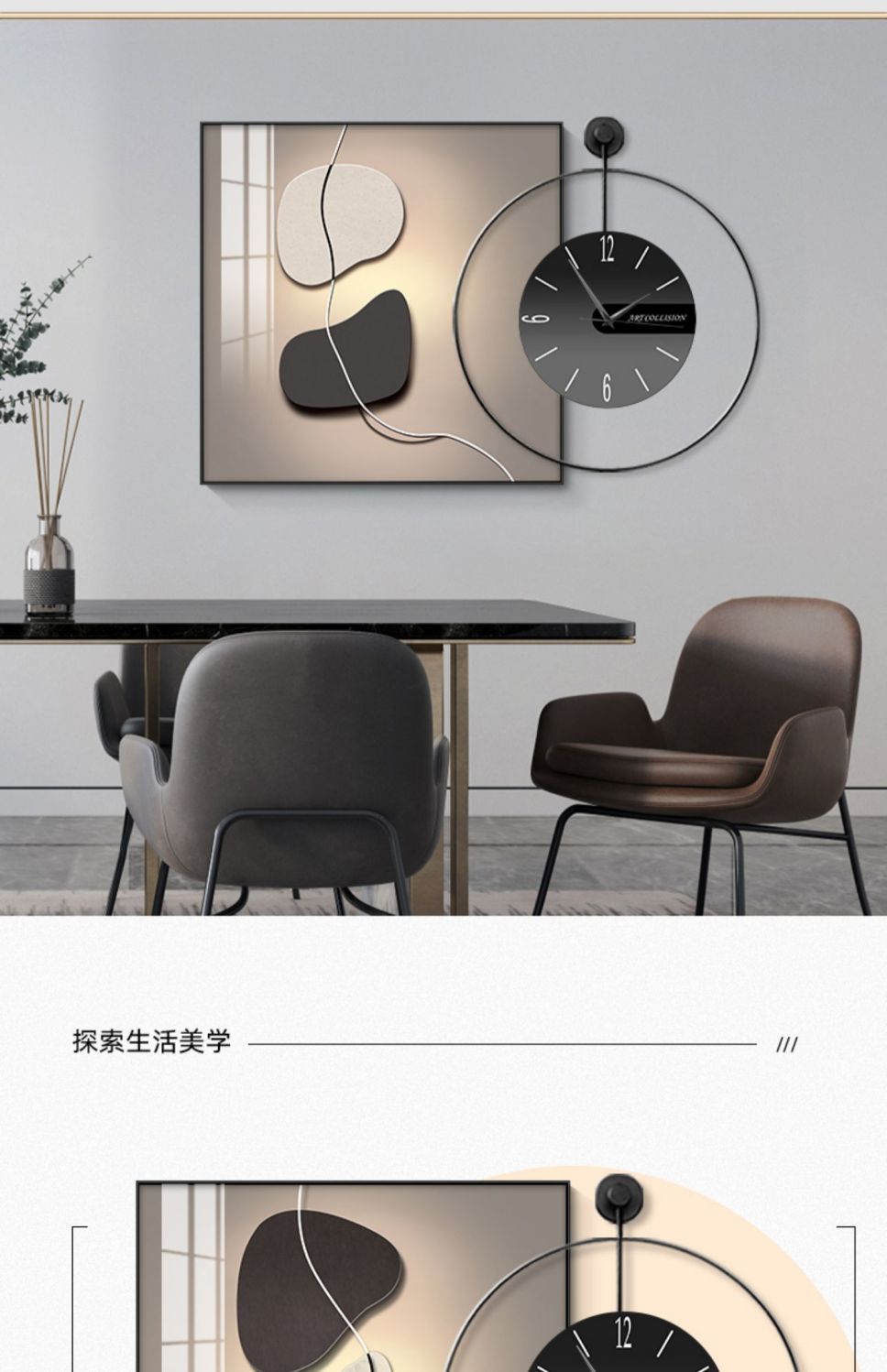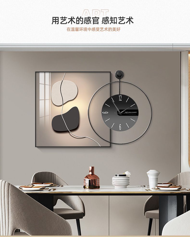 创意餐厅装饰画简约钟表大气餐桌背景墙静音钟表画饭厅墙面画