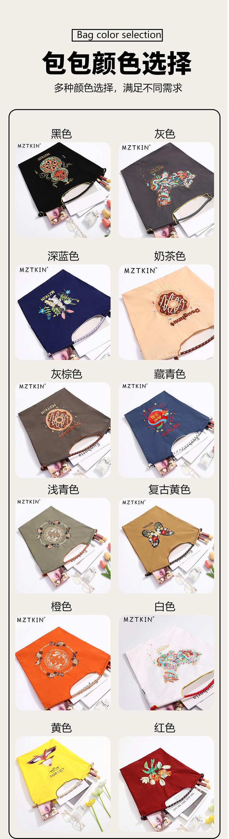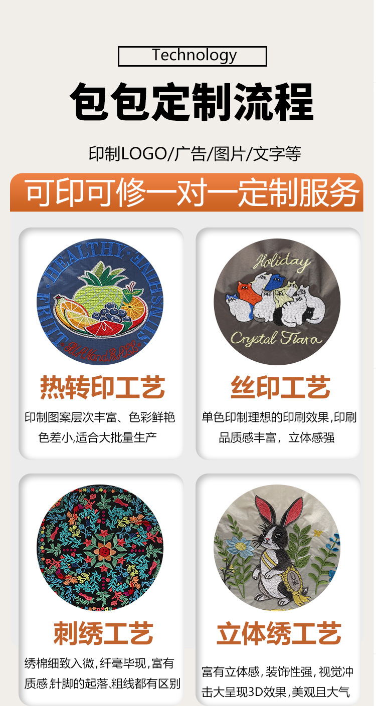 刺繍バッグ、カスタムロゴ、工場直販キャンバスバッグ、専門の女性向けトレンドハンドバッグ、多用途バッグのカスタムオーダー