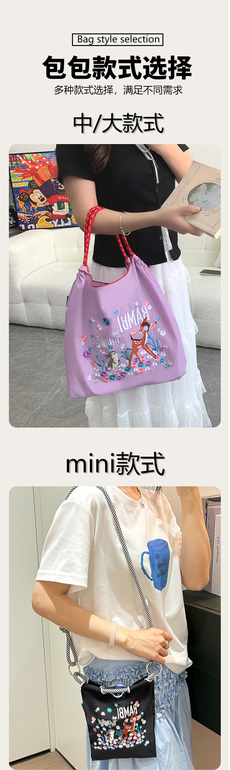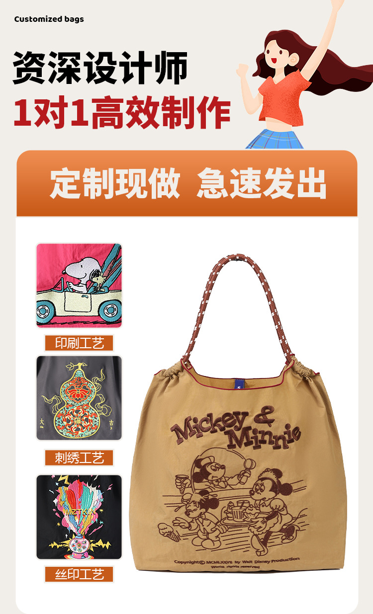 秋冬新作 レディースバッグ 刺繍入り漫画柄 大容量トートバッグ 多用途キャンバスバッグ ショルダーバッグ スティッチバッグ