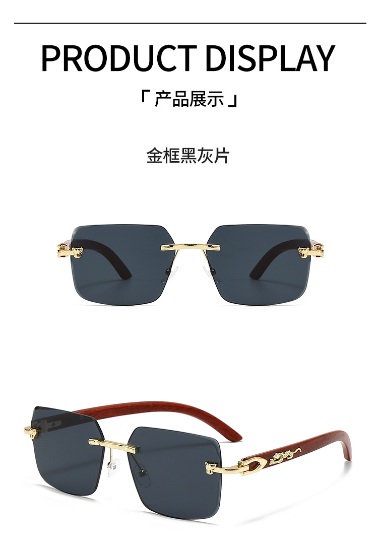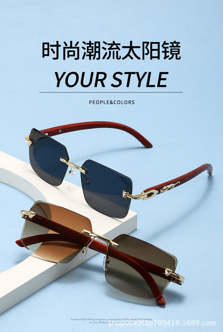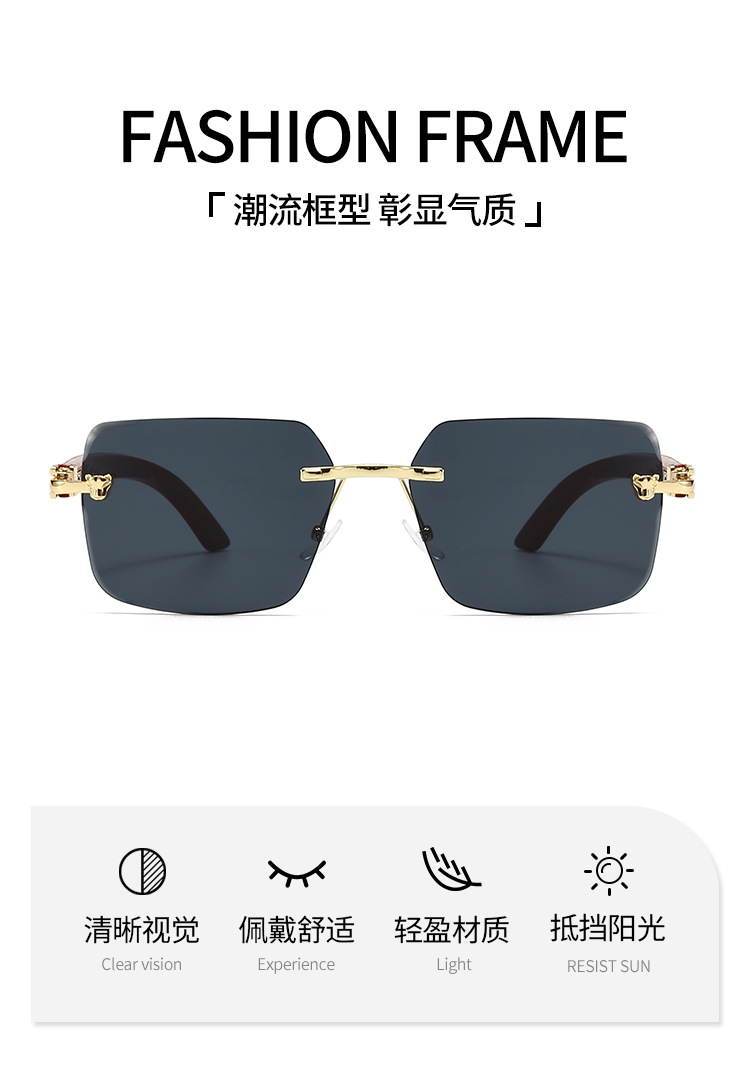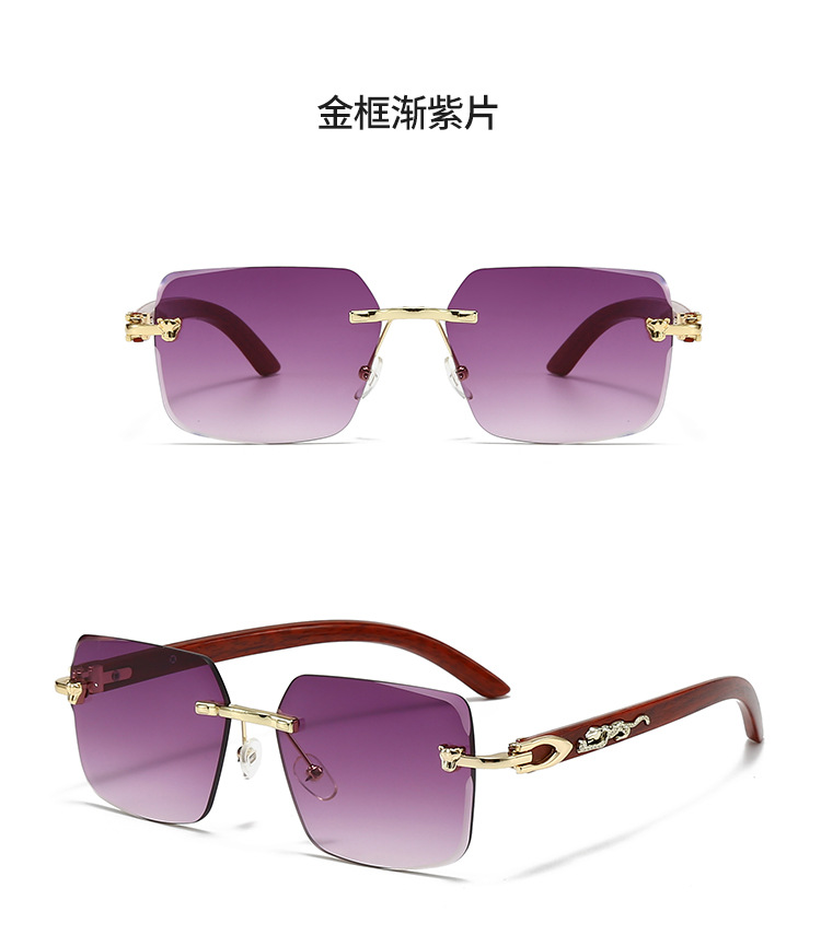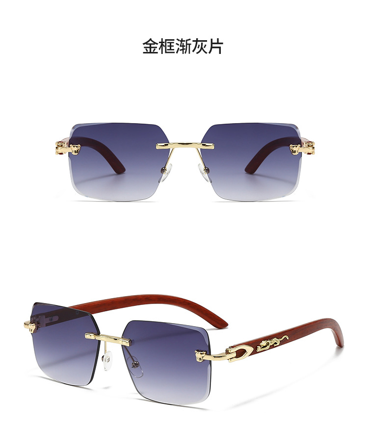 2025欧米風クロスボーダー型豹枠なし縁切りサングラス男性型高級ビジネス金属木目角枠眼鏡
