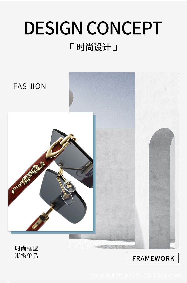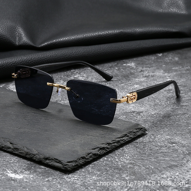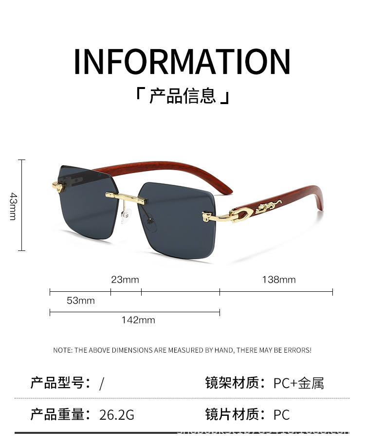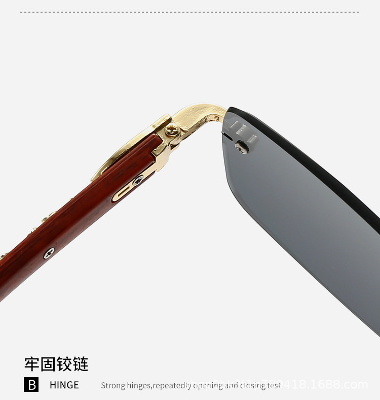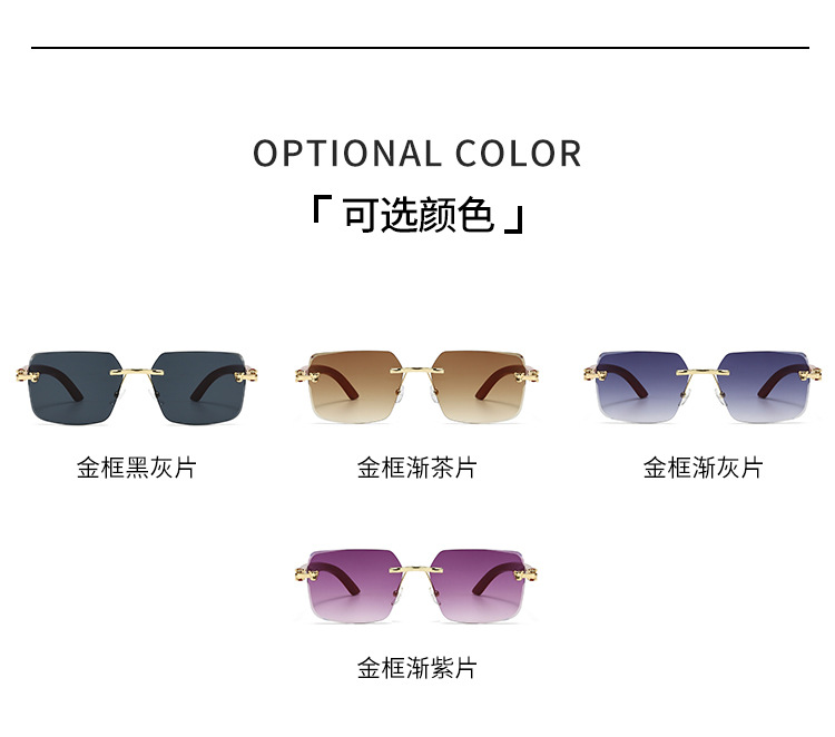 2025欧米風クロスボーダー型豹枠なし縁切りサングラス男性型高級ビジネス金属木目角枠眼鏡