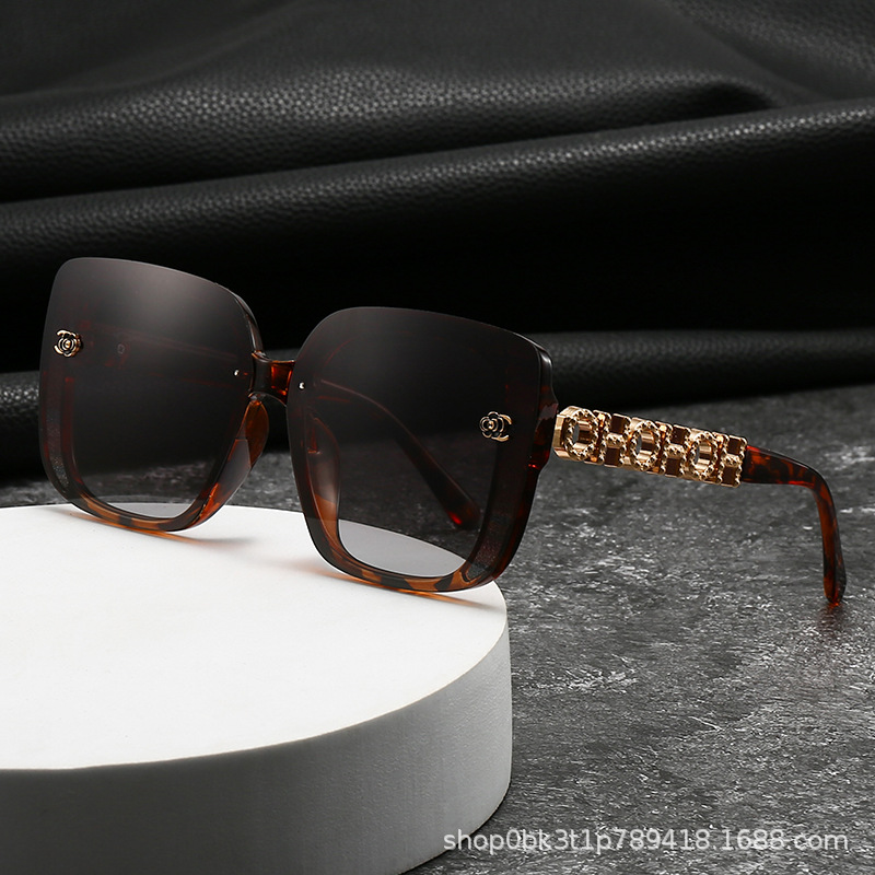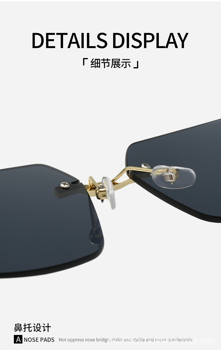 新商品の縁なしエッジカット紫外線防止サングラス女性ファッションモデルネット赤震え音ins同タイプサングラス