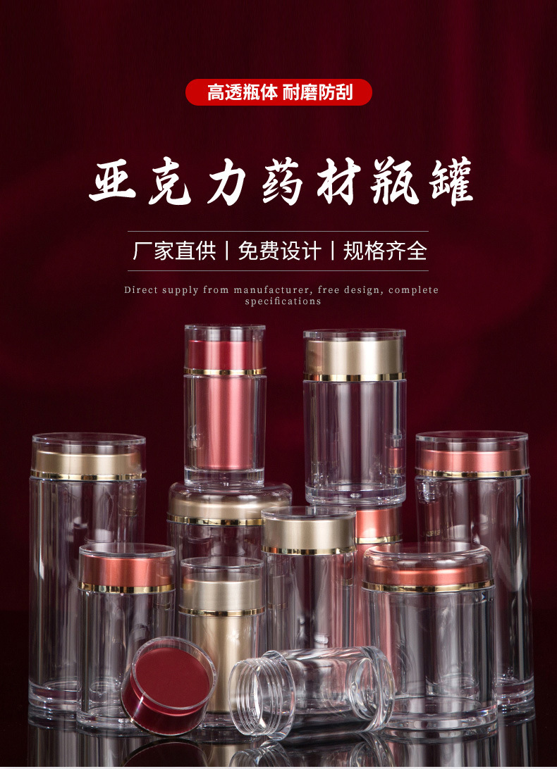 プラスチックボトルアクリルカスタム透明オタネ人参粉末デンドロビウムアメリカ人参黒クコ瓶ヘルスケア製品ボトル