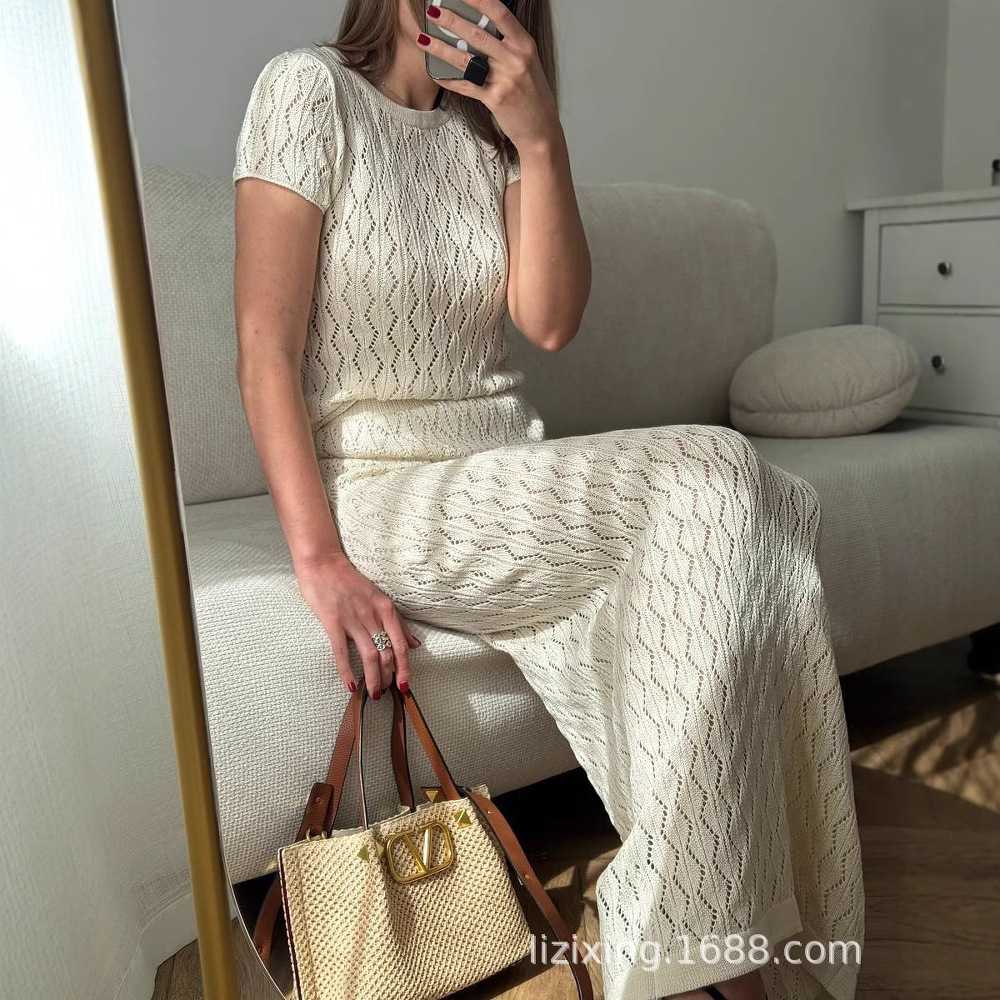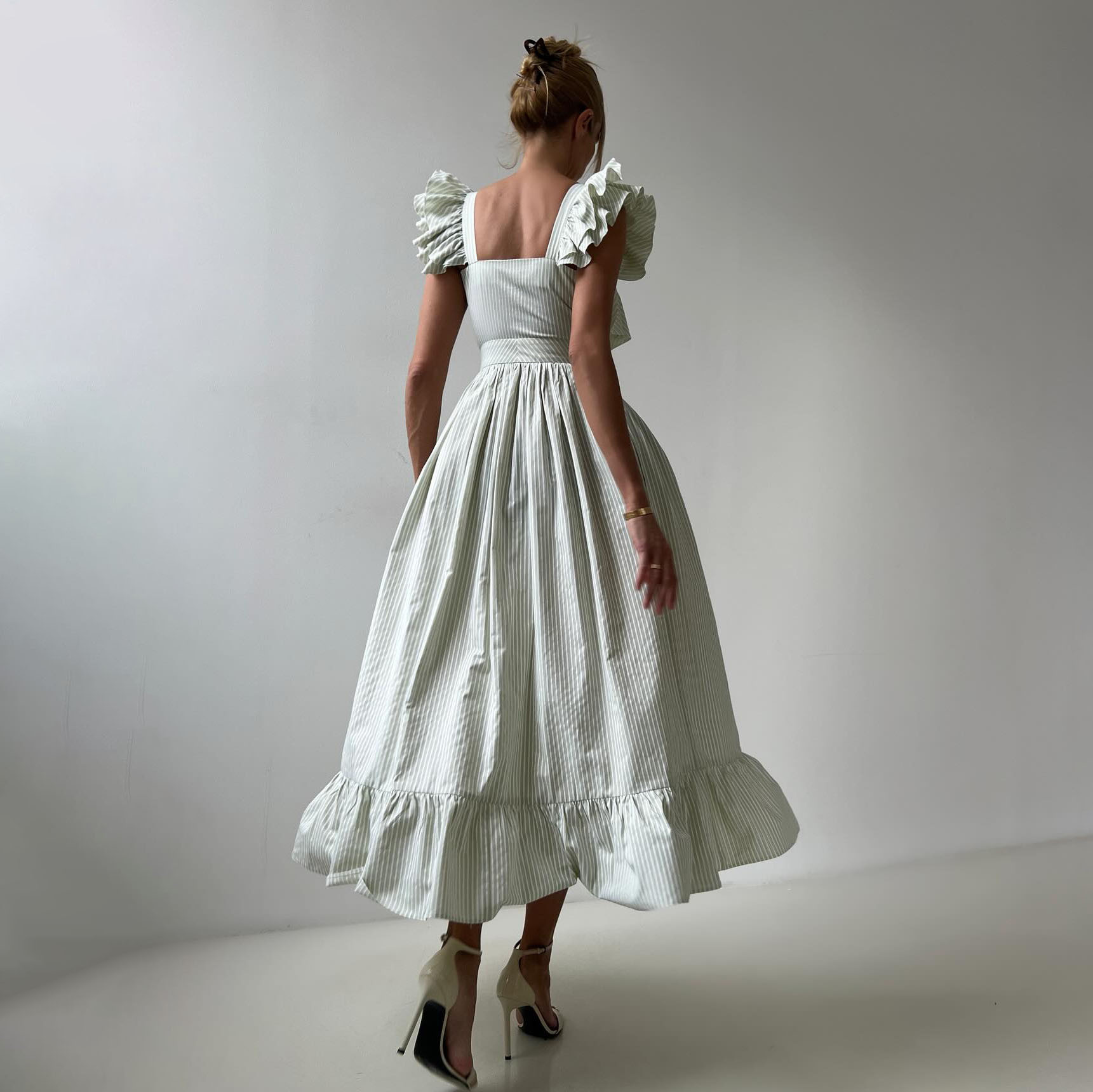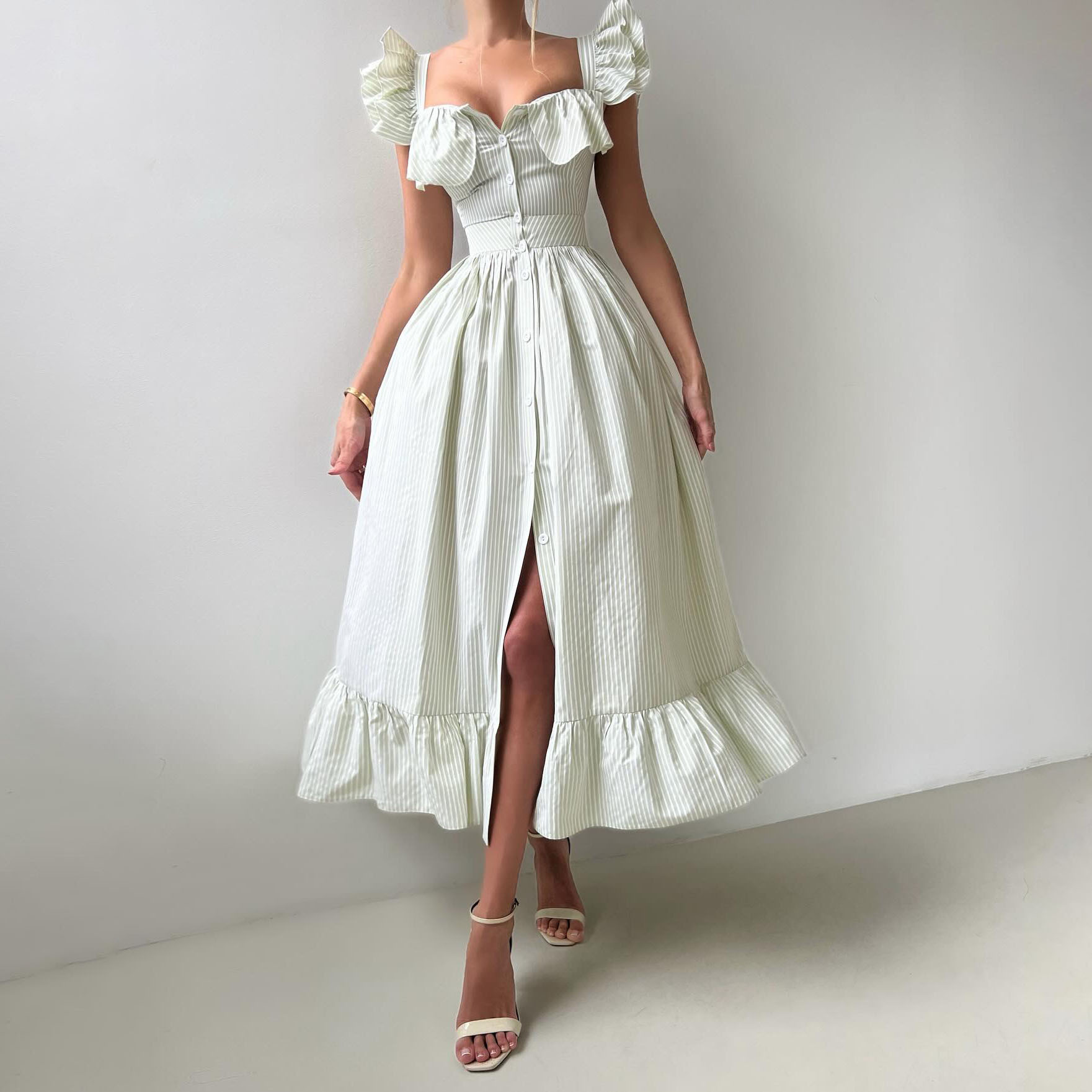 欧美气质通勤风荷叶边条纹连衣裙女夏高级感领口袖口双设计型女装