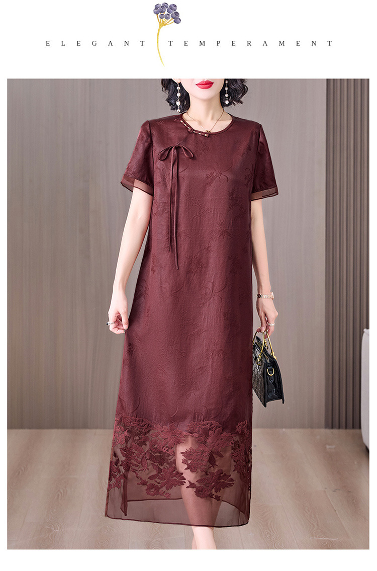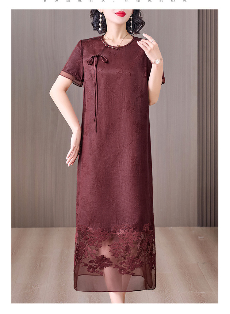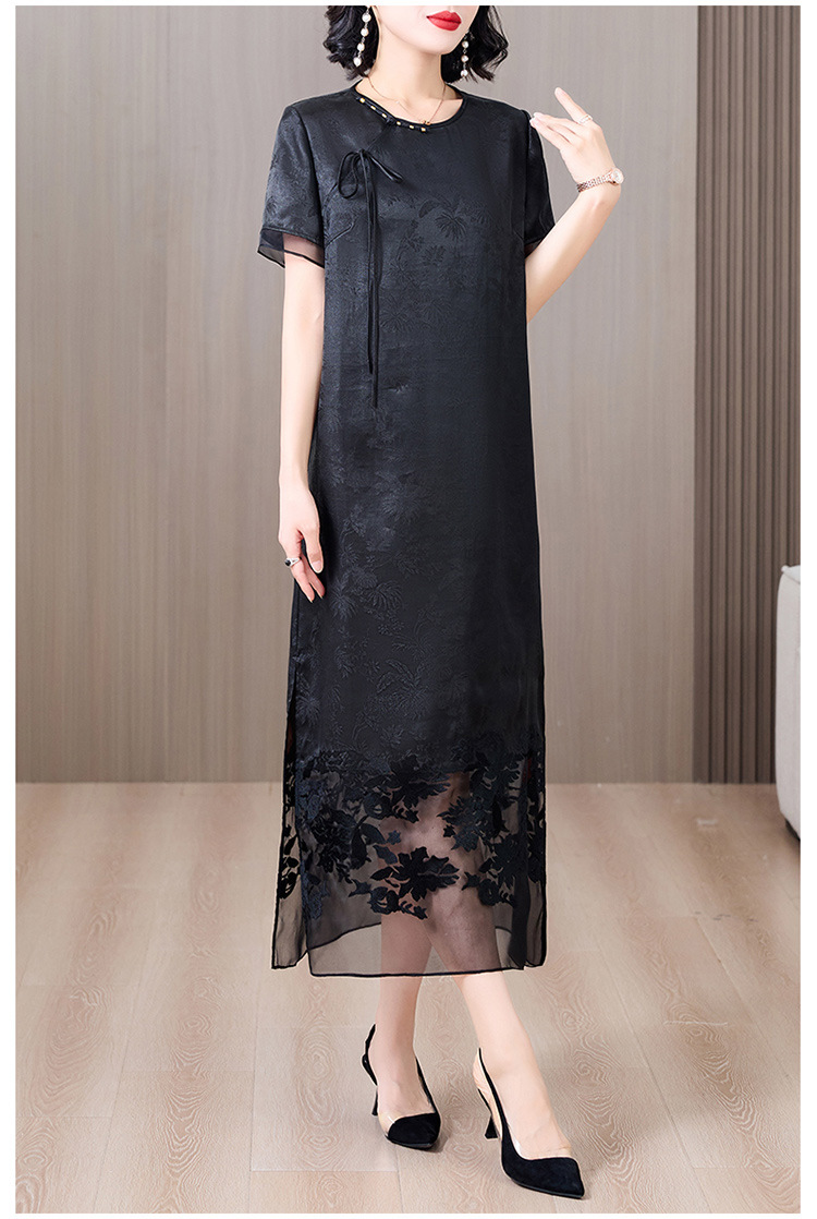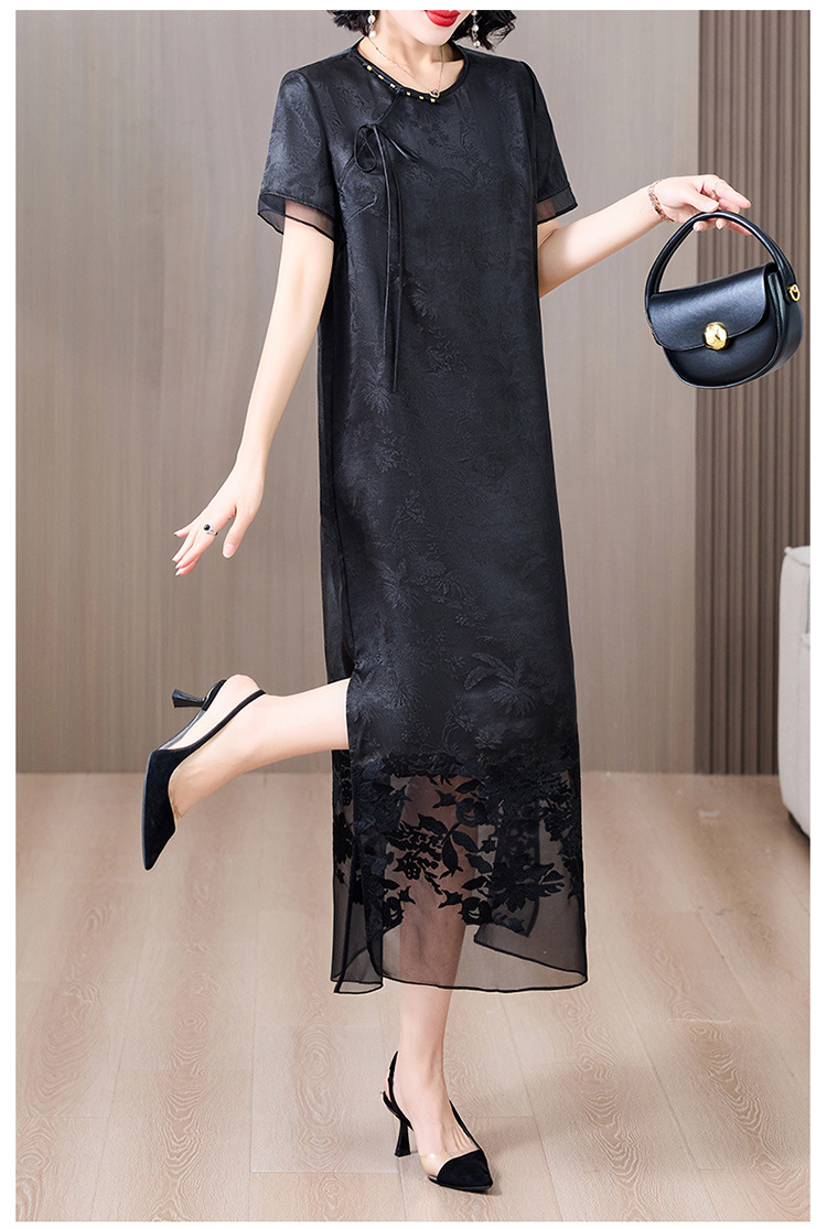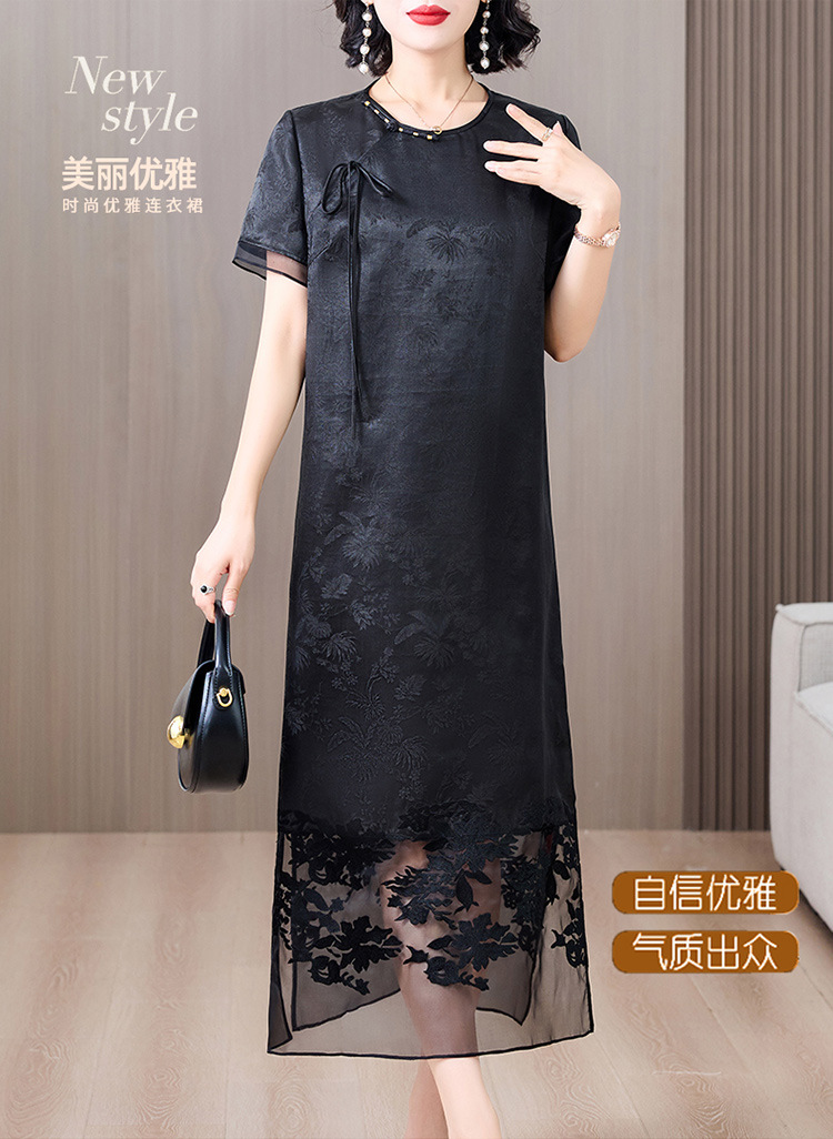 Myx9068新中国式レトロジャカード気質ワンピース女性2025夏新作重工刺繍中ロングスカート