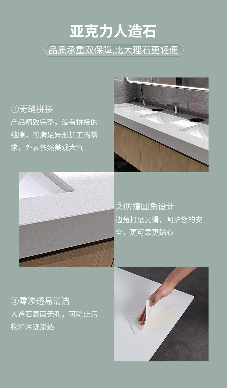 Yuxia アクリル人造石吊り下げ洗面台一体成型シームレスダブル一体型洗面器メーカー直販