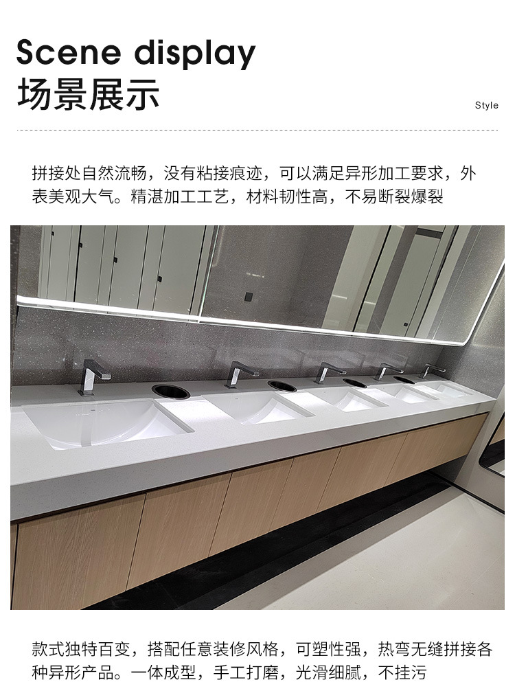 埋め込み型スプライシングハイ&ローダブル洗面台ホテルショッピングモール公共ダブル一体型洗面台コレーン人造石