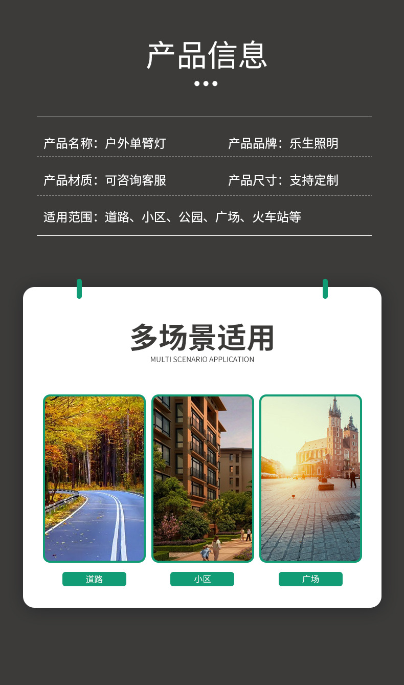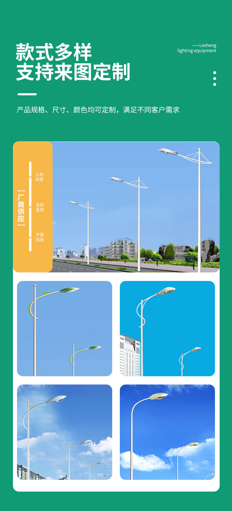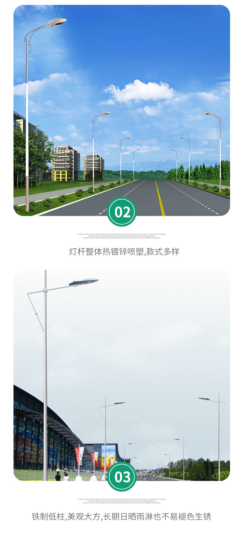 カスタマイズ可能な多仕様LED街路灯、道路用単/両アームランプ、農村工事用屋外高輝度照明、スマート街路灯ポール
