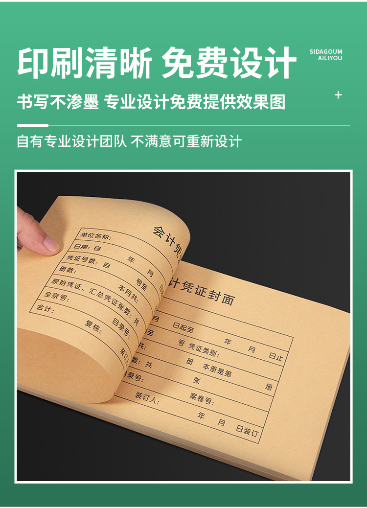 100套会计凭证封面财务记账凭证通用档案增值税专用牛皮纸装订a5