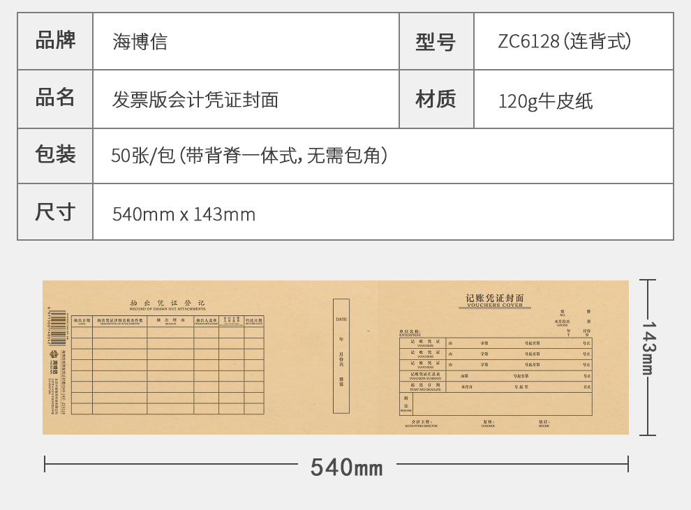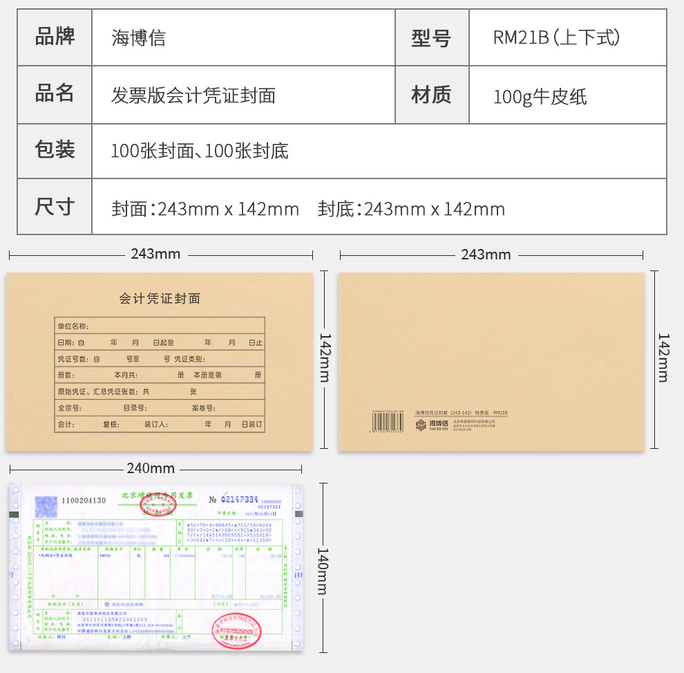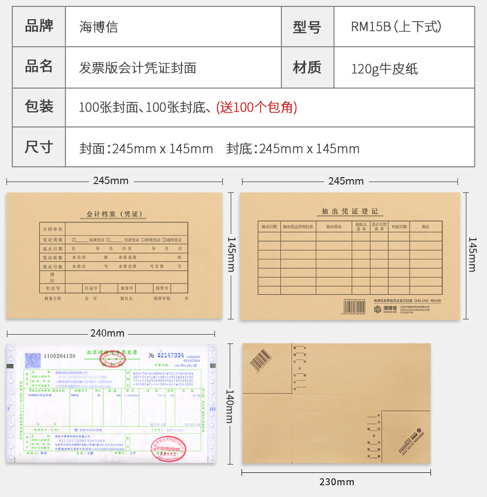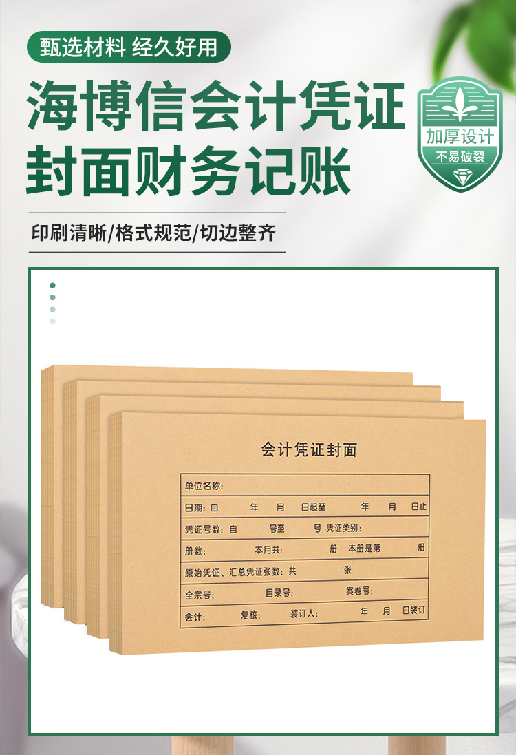 海博信A4会计凭证封面封底送包角竖版RM28B记账封皮100克牛皮纸