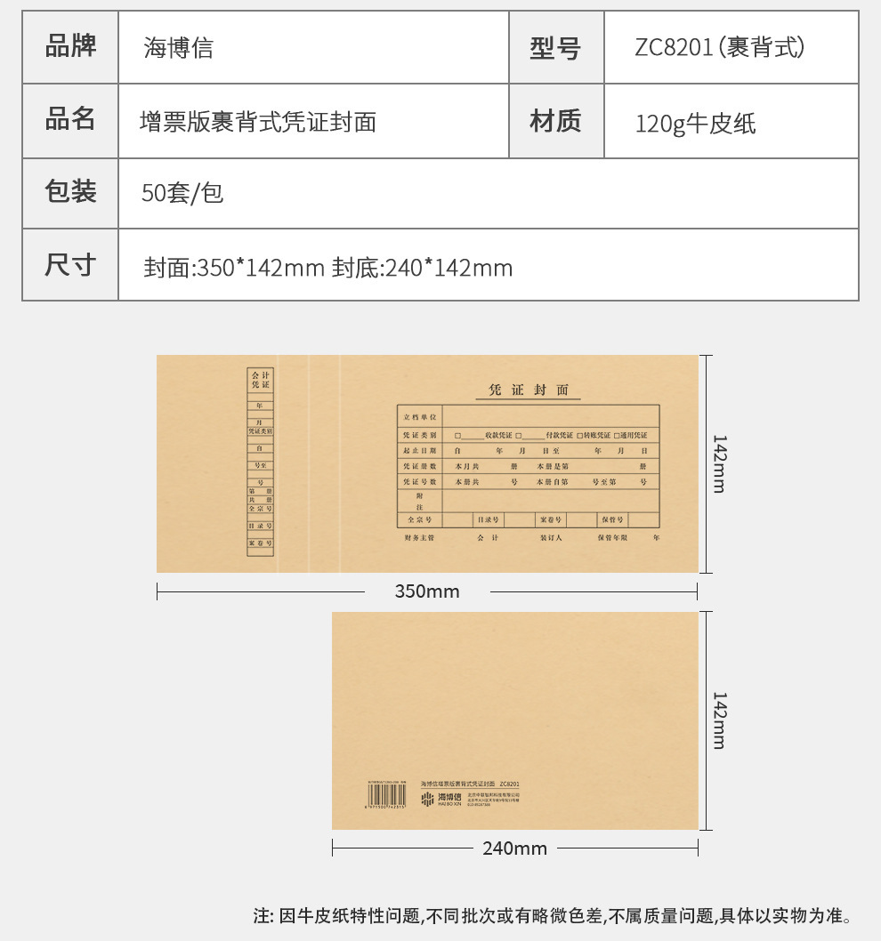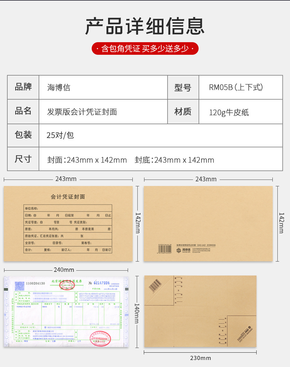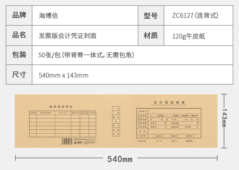 海博信A4会计凭证封面封底送包角竖版RM28B记账封皮100克牛皮纸