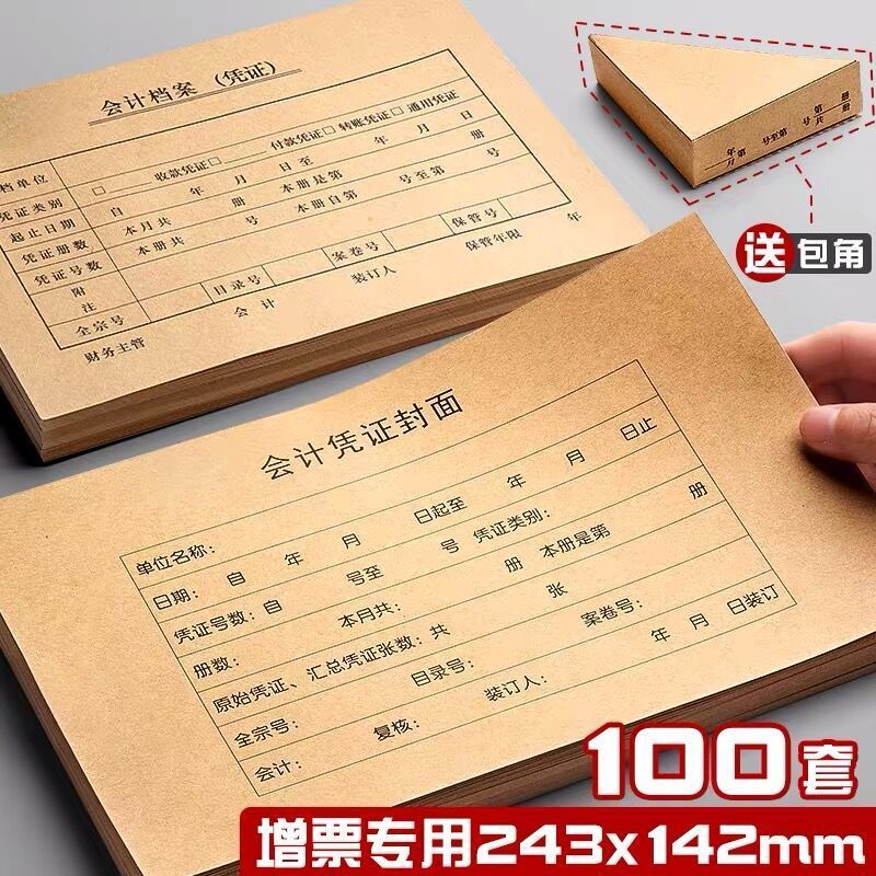 100セット会計証明書表紙243*142クラフト紙記帳シール紙包角紙a5増値税専用票