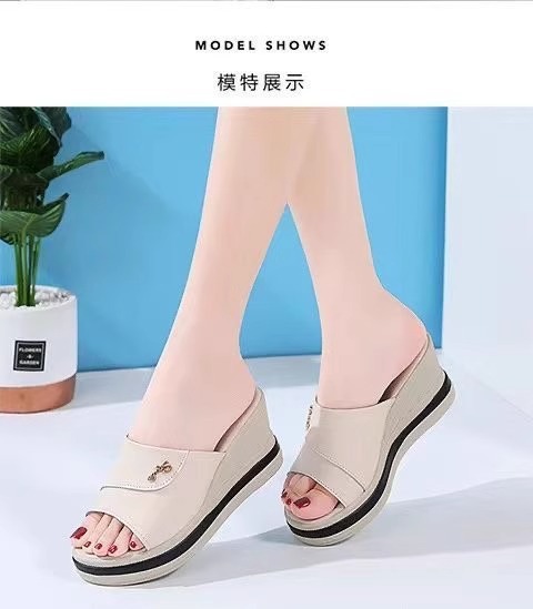 女性用サンダル、厚底ヒールビーチサンダル、2025年夏の新作ファッション、万能リボンハイヒールサンダル