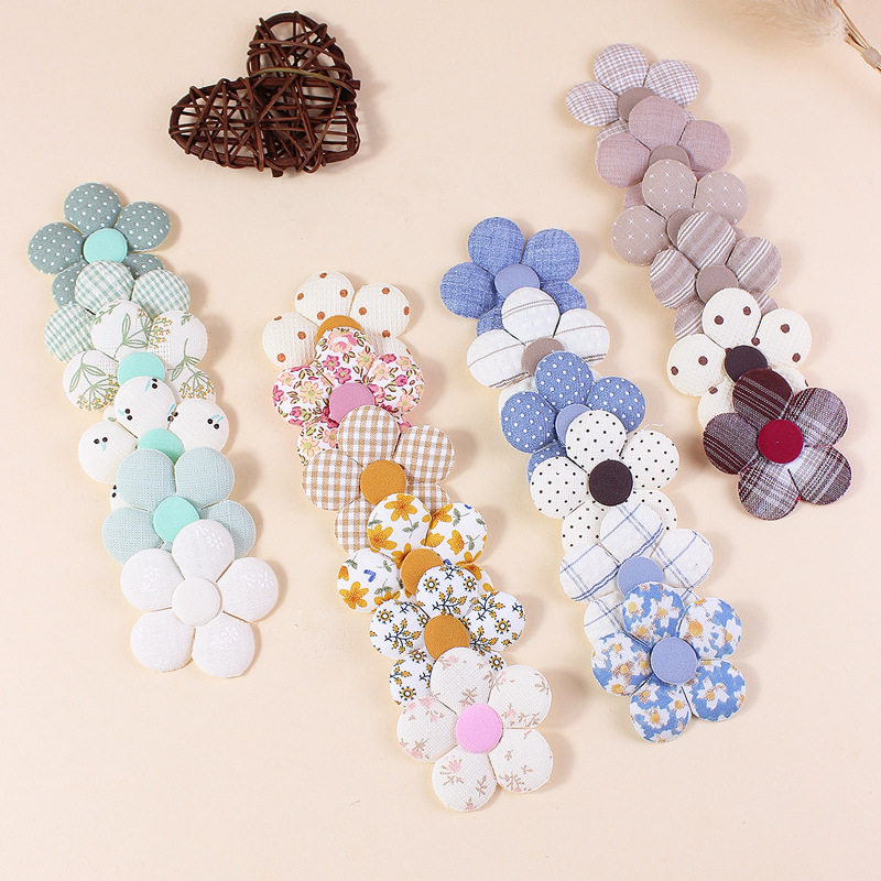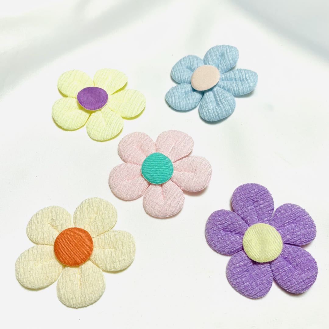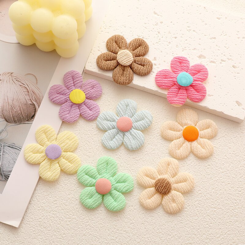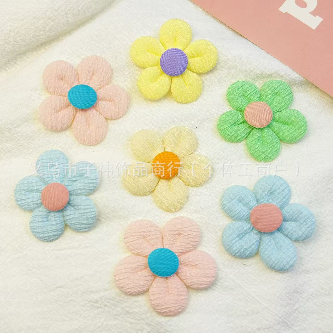 【名称】现货手工布艺珍珠立体五瓣花造型服装辅料DIY胸针发圈发饰配件