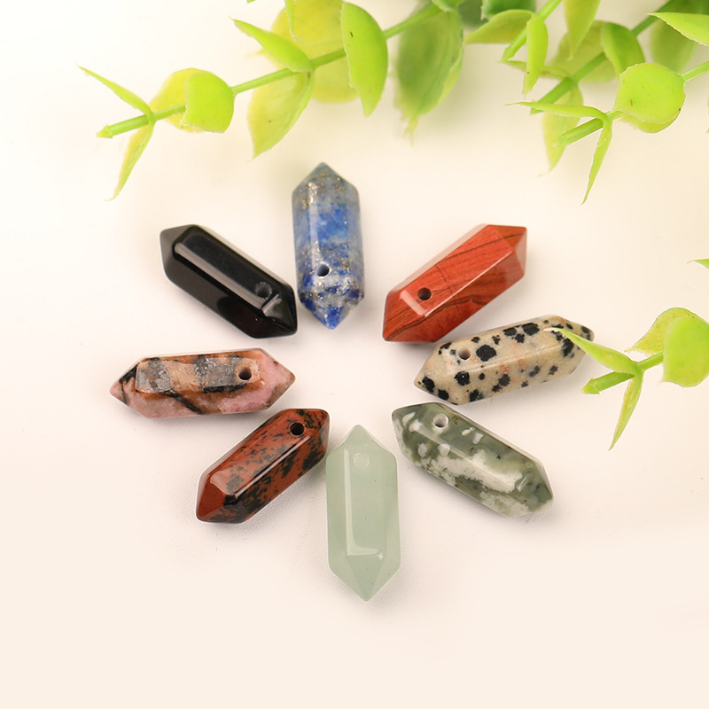 天然水晶25mm双尖六棱柱打孔挂件原石柱子红黄粉水晶柱DIY配饰品
