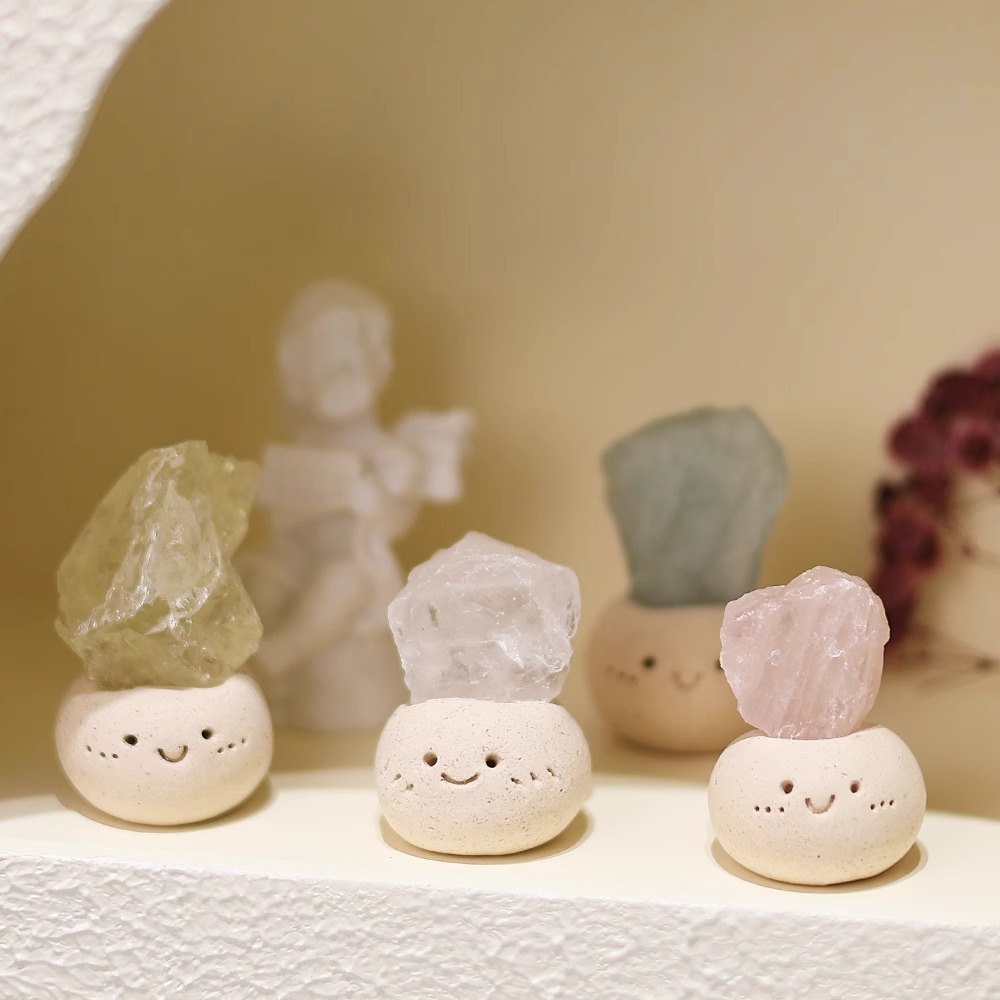 纯手工小豆丁可爱天然水晶原矿裸石工位桌面装饰情绪摆件生日礼物