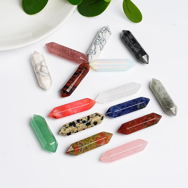 天然水晶原石双尖六棱柱摆件虎眼石粉水晶柱子DIY吊坠饰品配饰