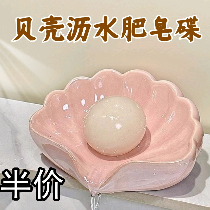 厂家批发轻奢风创意陶瓷家用香皂盒贝壳沥水肥皂盒高档免打孔皂架