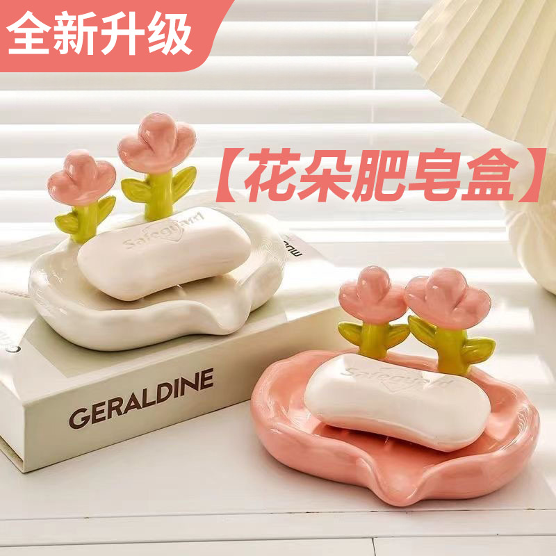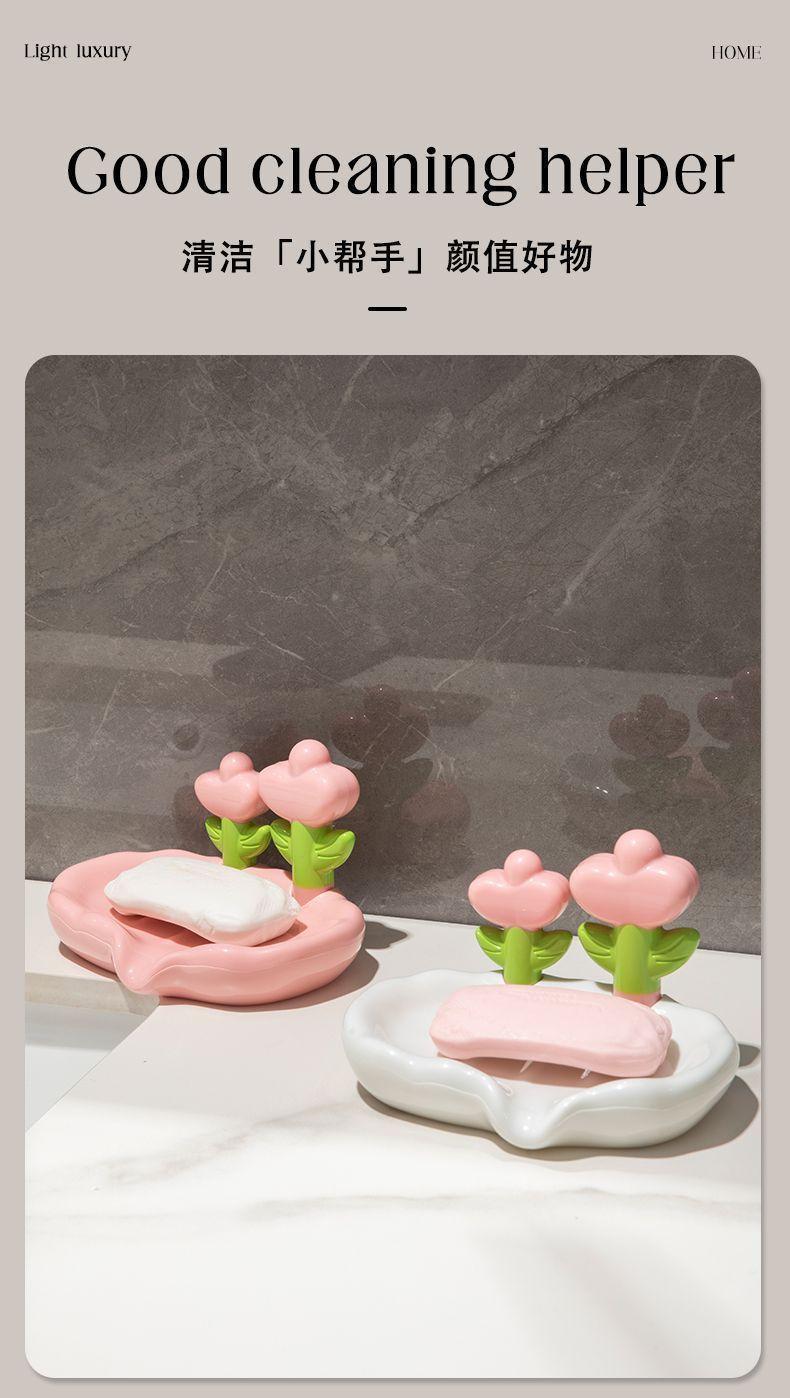 创意可爱花朵肥皂盒塑料免打孔沥水家用香皂洗手台置物架学生宿舍