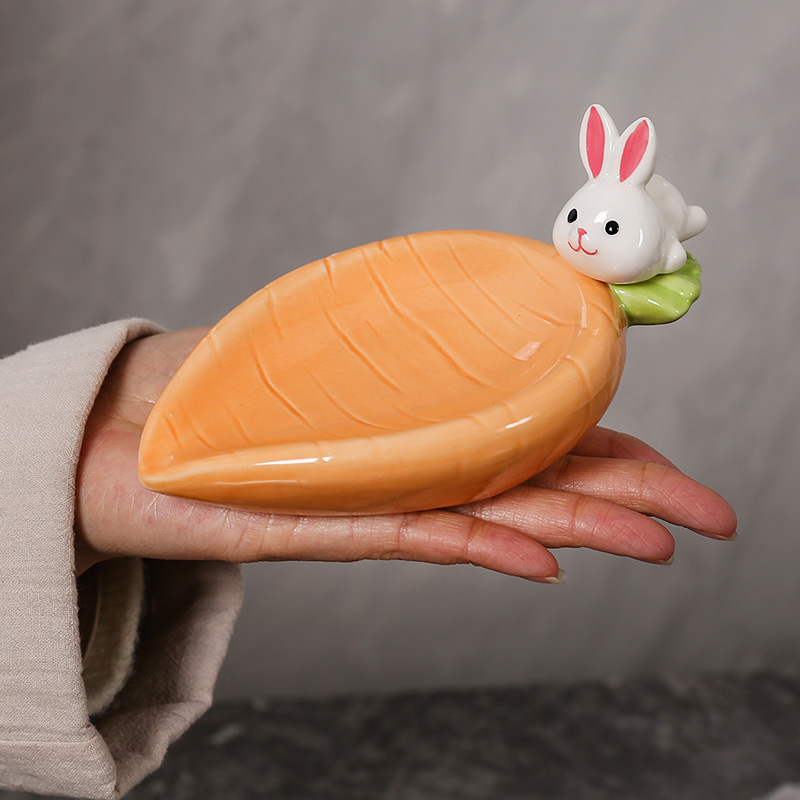 ウサギのニンジンセラミックかわいいウサギの石鹸箱水が溜まらないホテルのバスルームのシンク石鹸排水保管