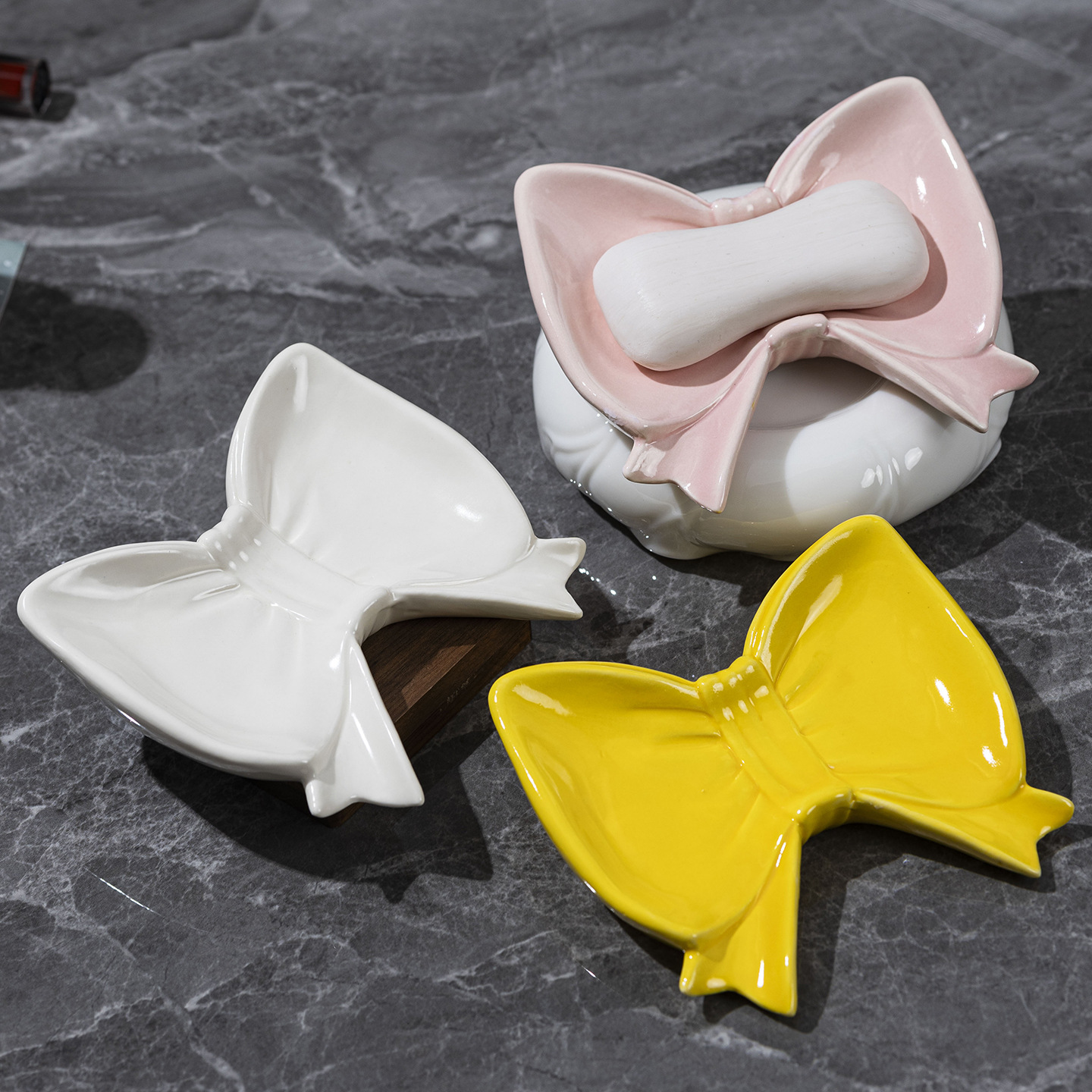 跨境可沥水蝴蝶结肥皂盒香皂盒卫生间家用置物架陶瓷不积水皂碟托