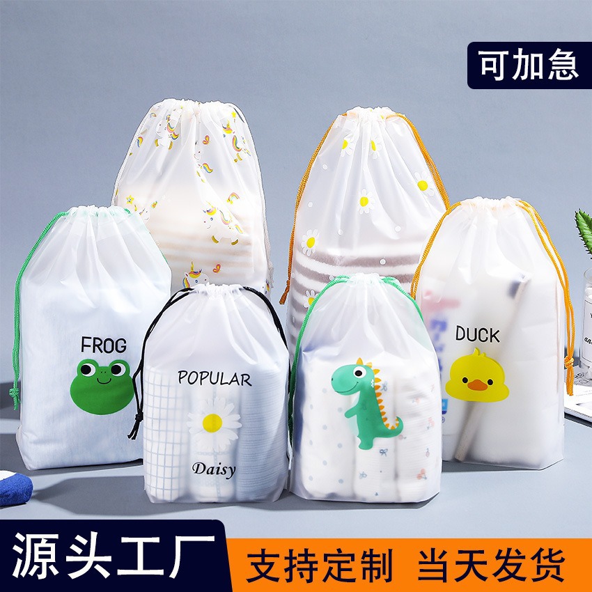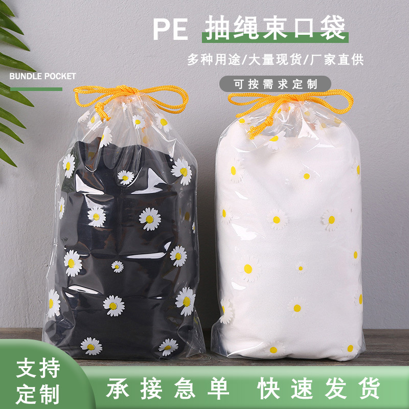 透明つや消しデイジーカラー印刷包装袋旅行衣類下着ロープ収納袋防水巾着ポケット