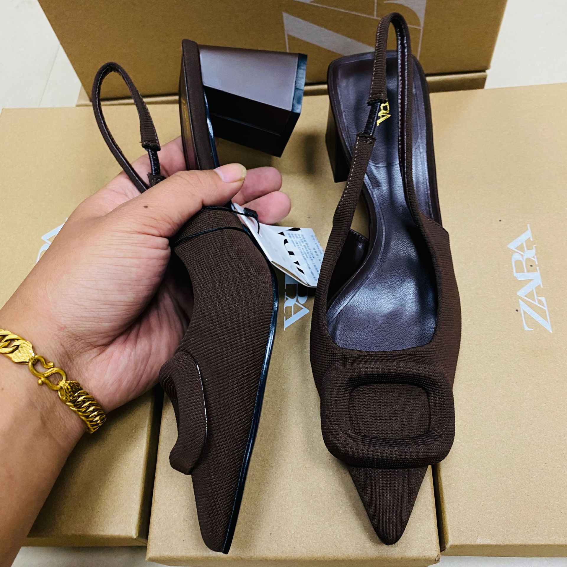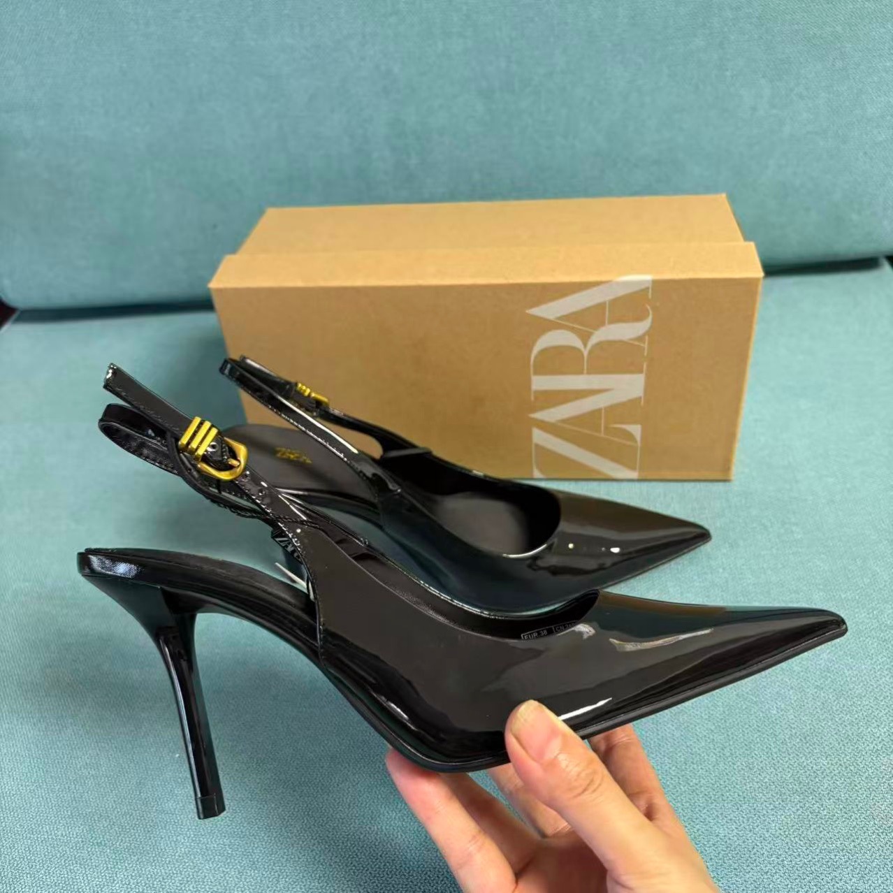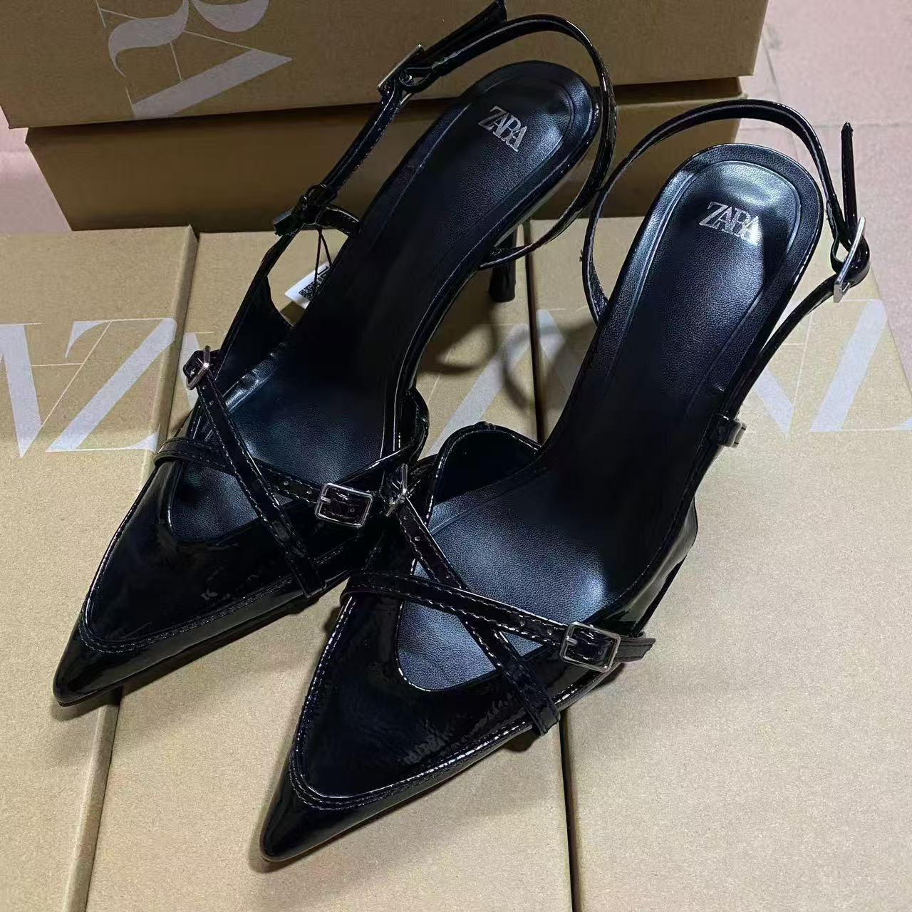 ZA女鞋2025秋季新品女鞋尖头时尚百搭方扣饰高跟后带细跟高跟鞋