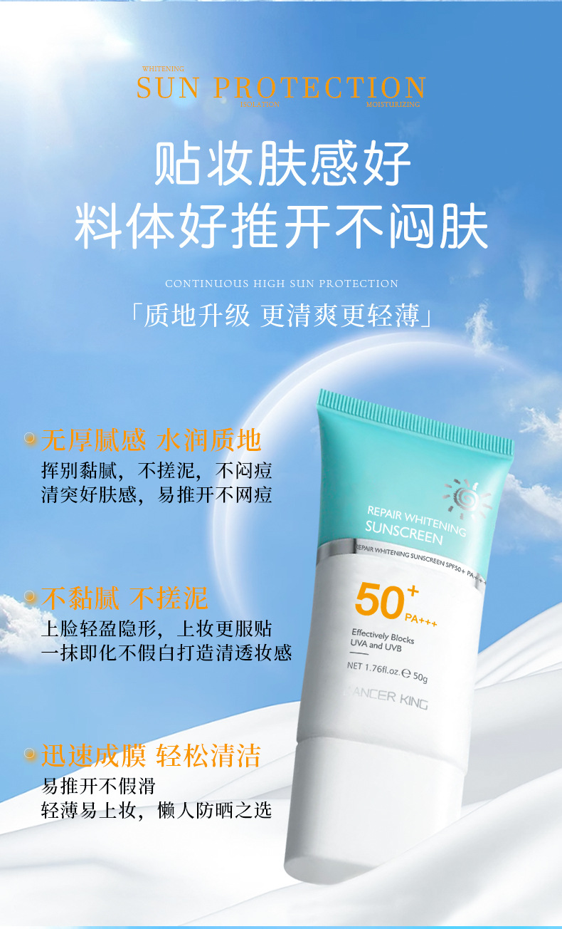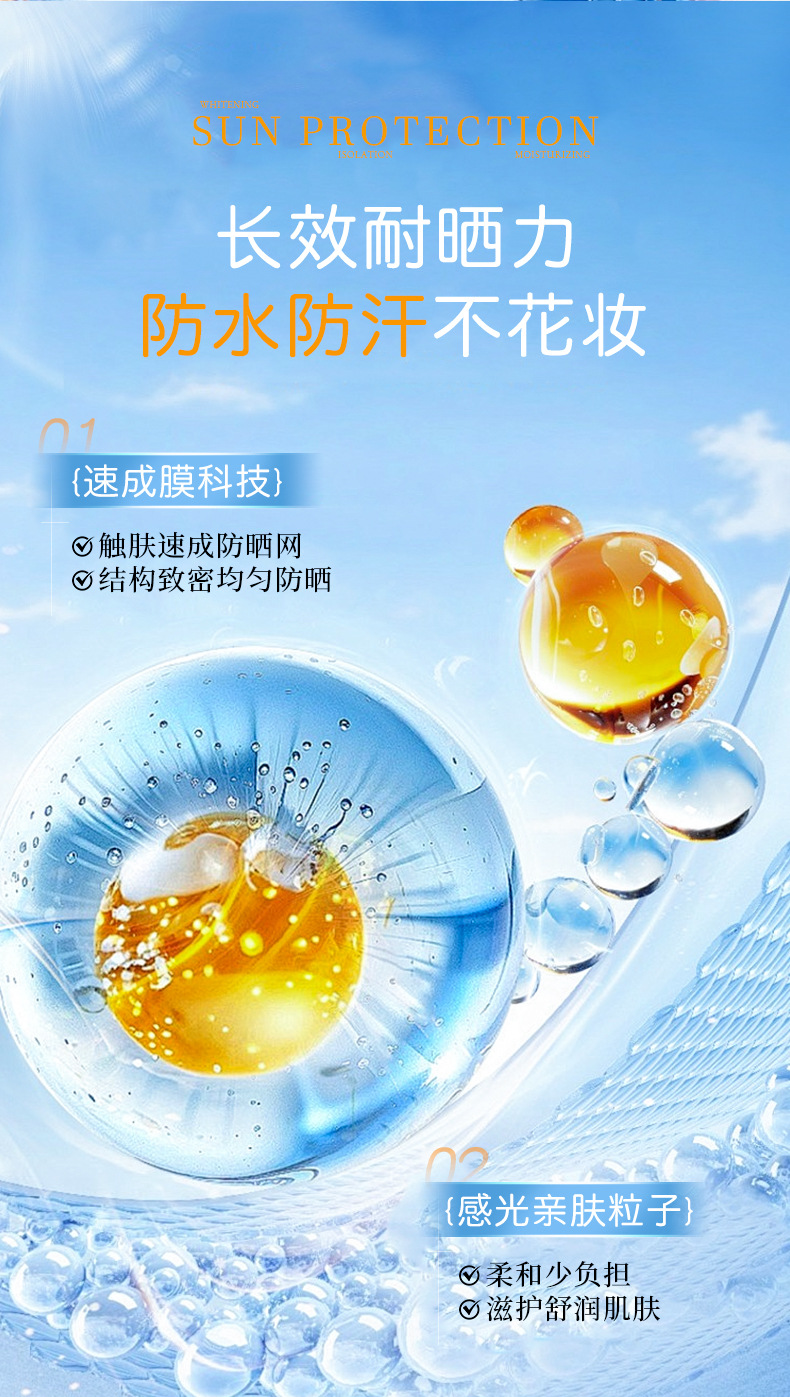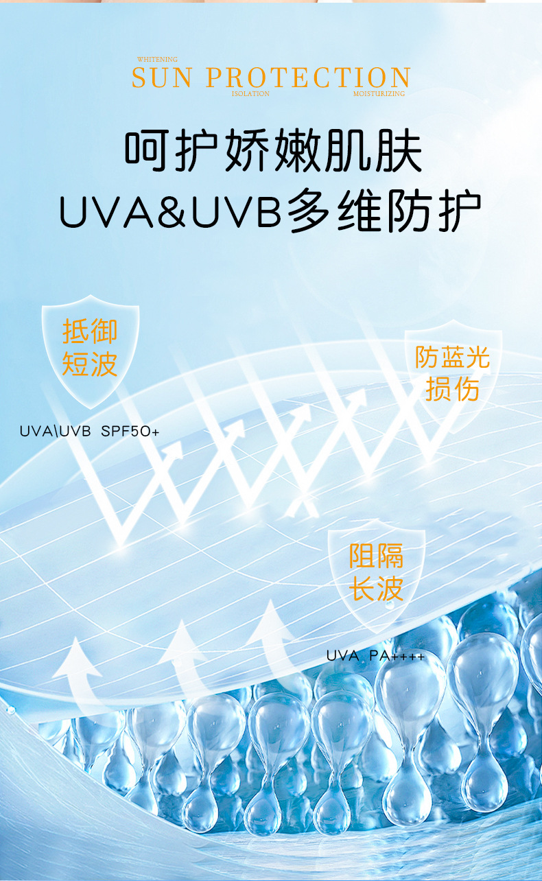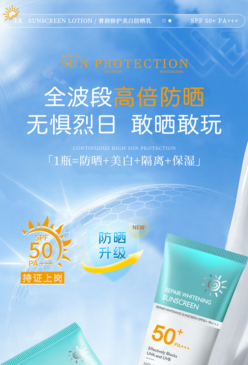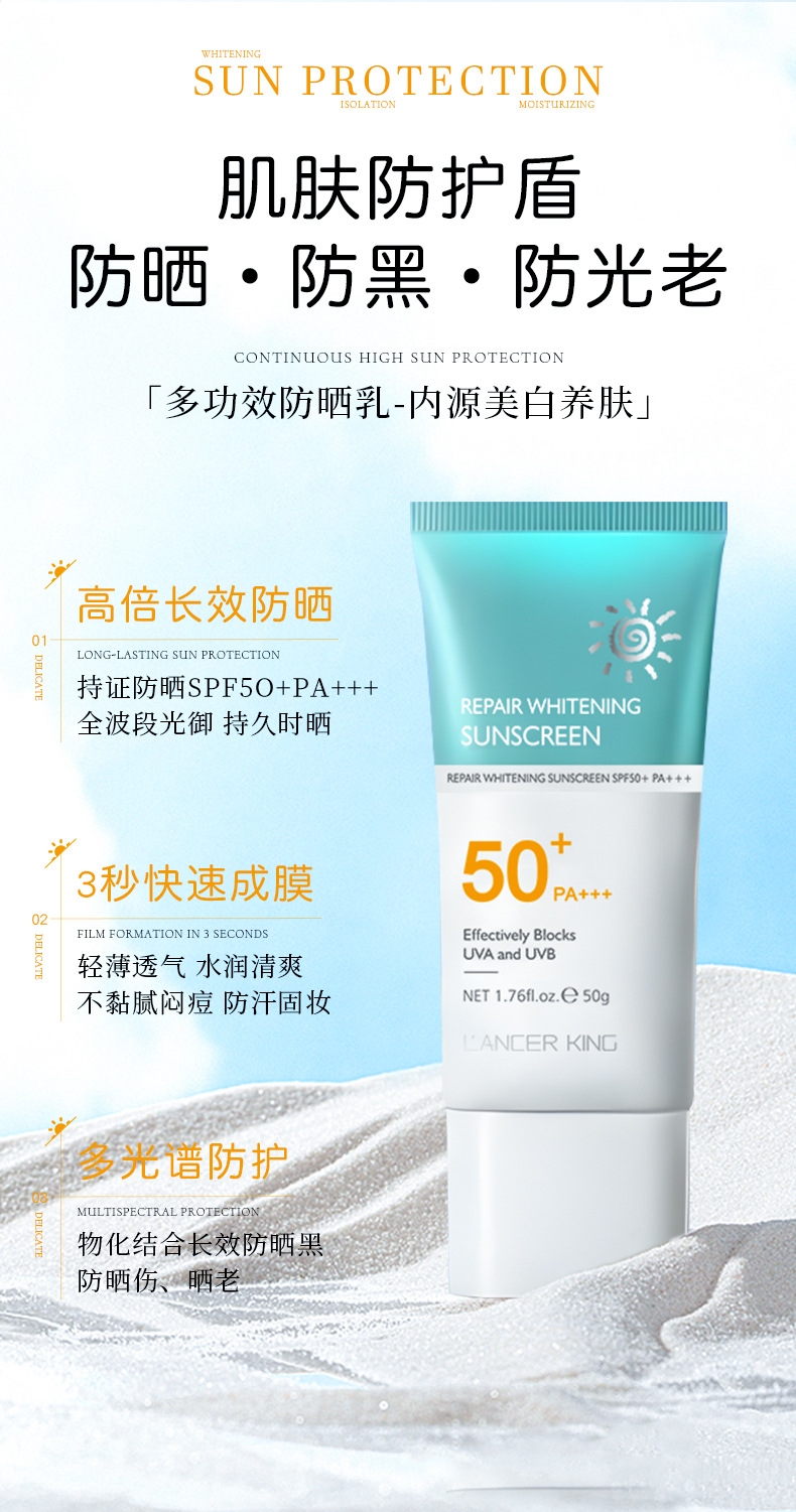 SPF50+美白隔离防晒霜防水防汗防紫外线持久隔离防晒二合一防晒乳