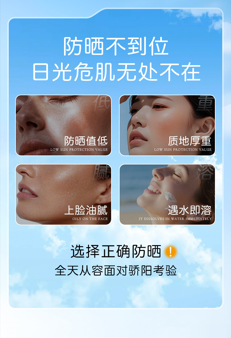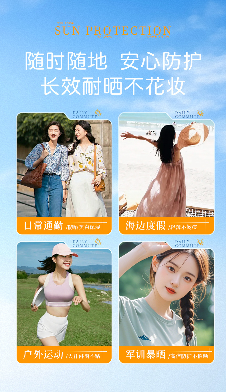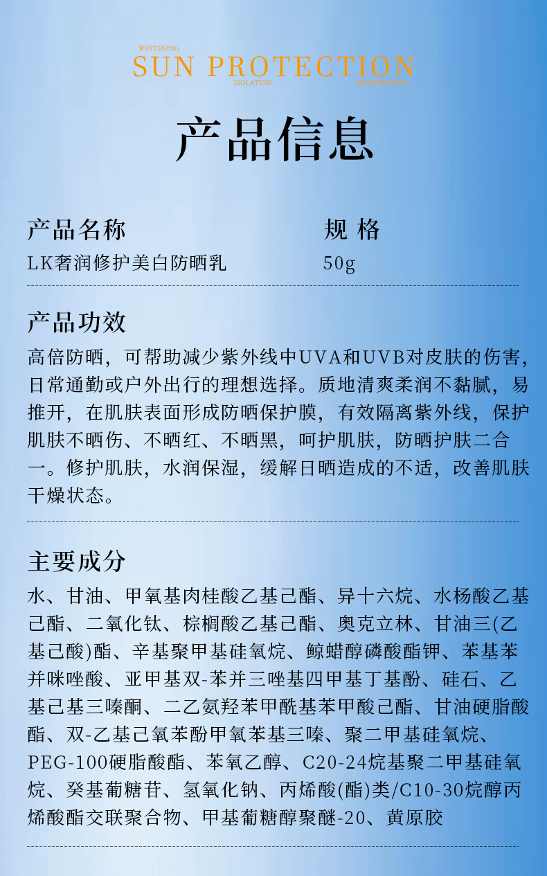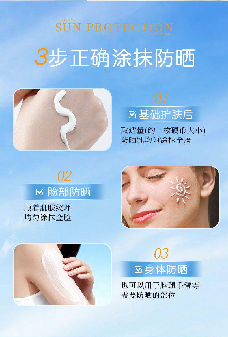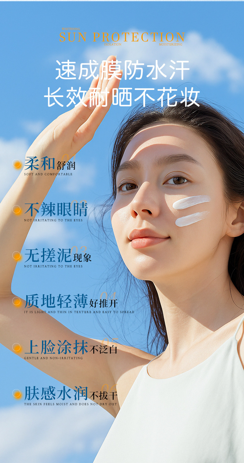 SPF50+美白隔离防晒霜防水防汗防紫外线持久隔离防晒二合一防晒乳