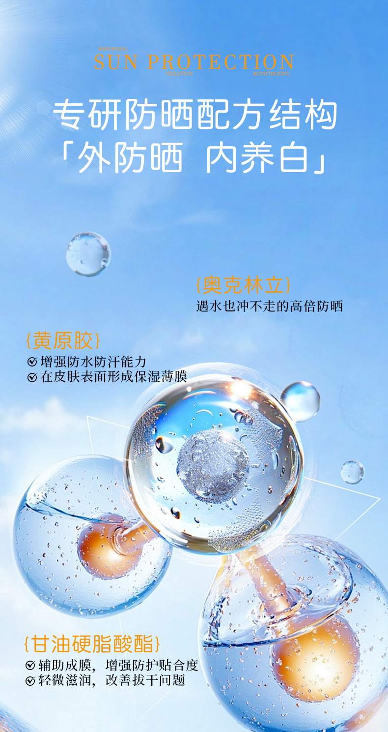 美白水感防晒乳隔离防紫外线防水防汗提亮肤色三合一高倍防晒霜女