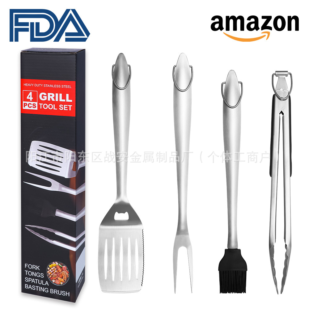 ステンレス4点セットバーベキューツールBBQアウトドア多目的シャベルスイープクランプ家庭用コンビネーションバーベキューセット