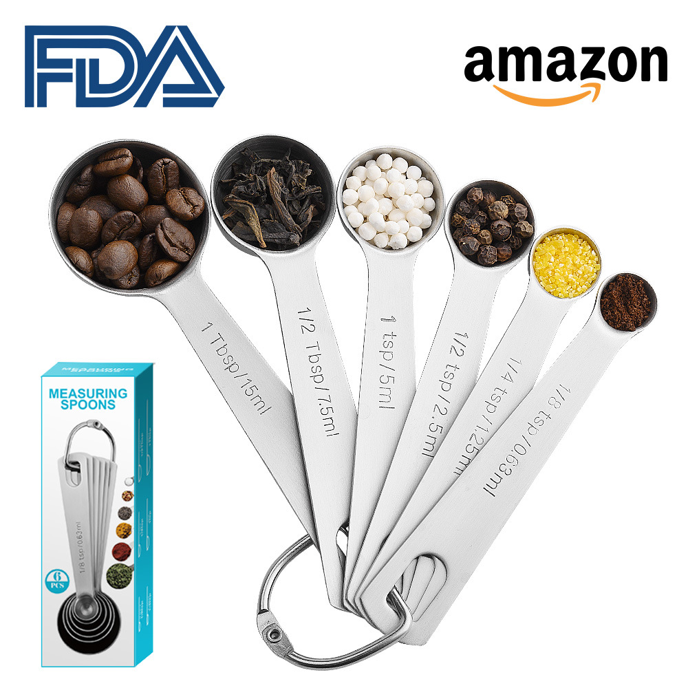 アメリカンシンプルステンレス丸型6点セット計量スプーンセット ベーキング用目盛り付き計量スプーン 調味料スプーン 料理用スプーン