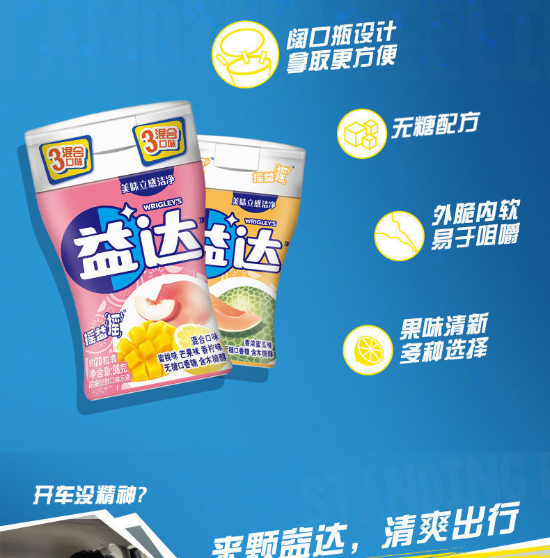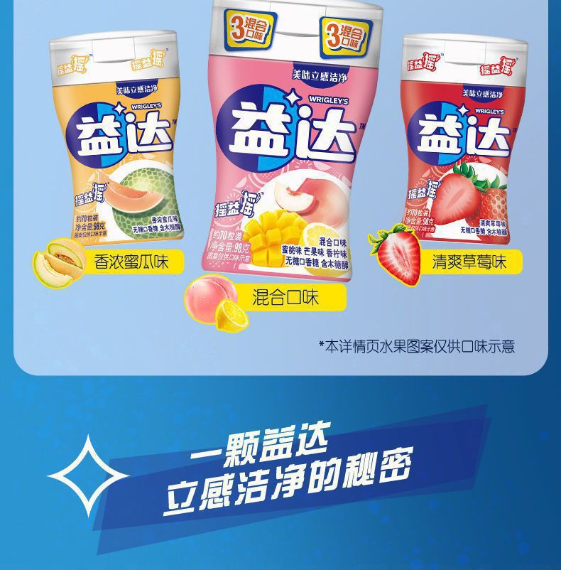 【14.9元70粒】益達ガム無糖キシリトール98g約70粒多組み合わせ大瓶包装