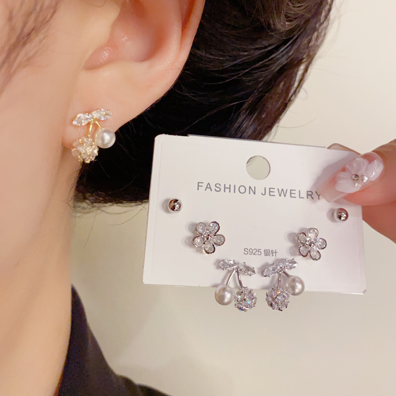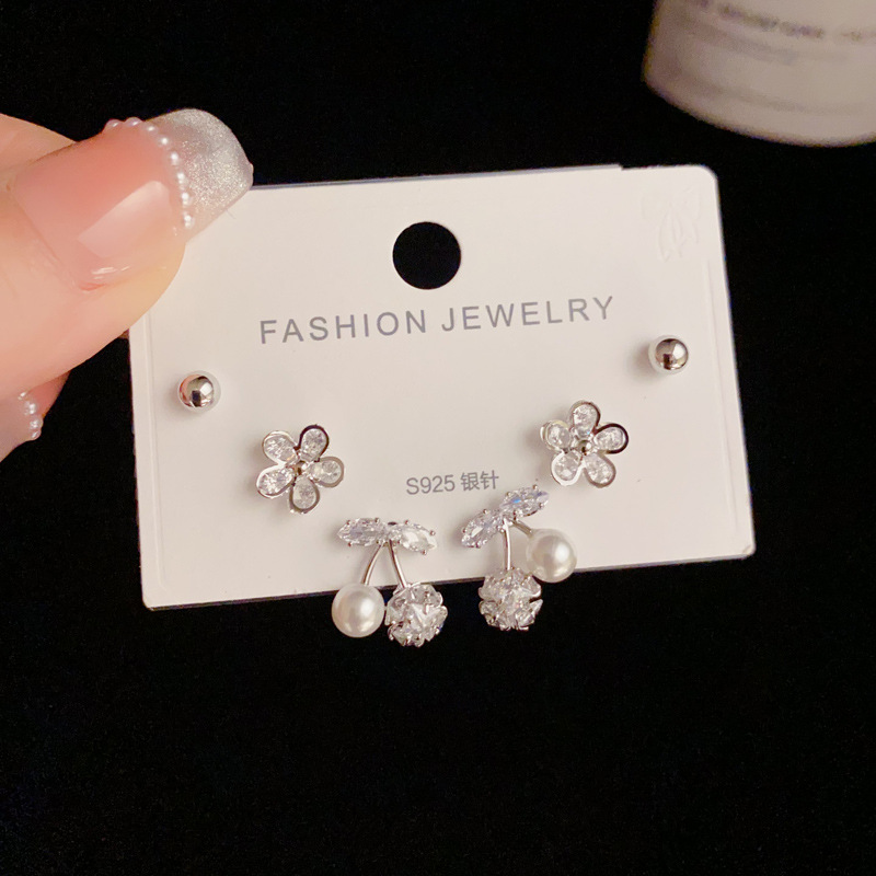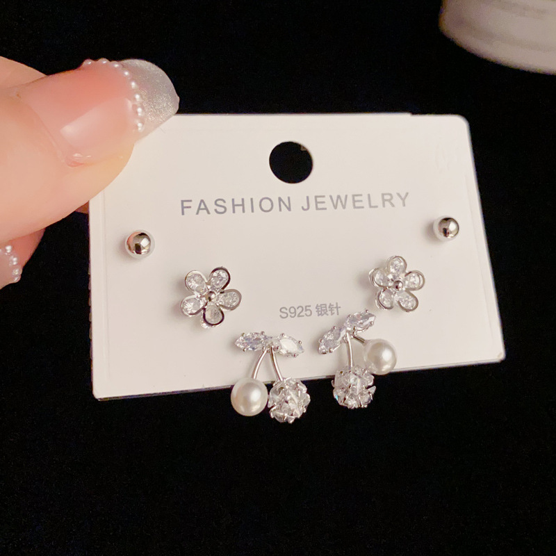 S925銀針気質ファッション百合雪花三点セットピアス女性洗練されたシンプルな超フラッシュイヤリング卸売り