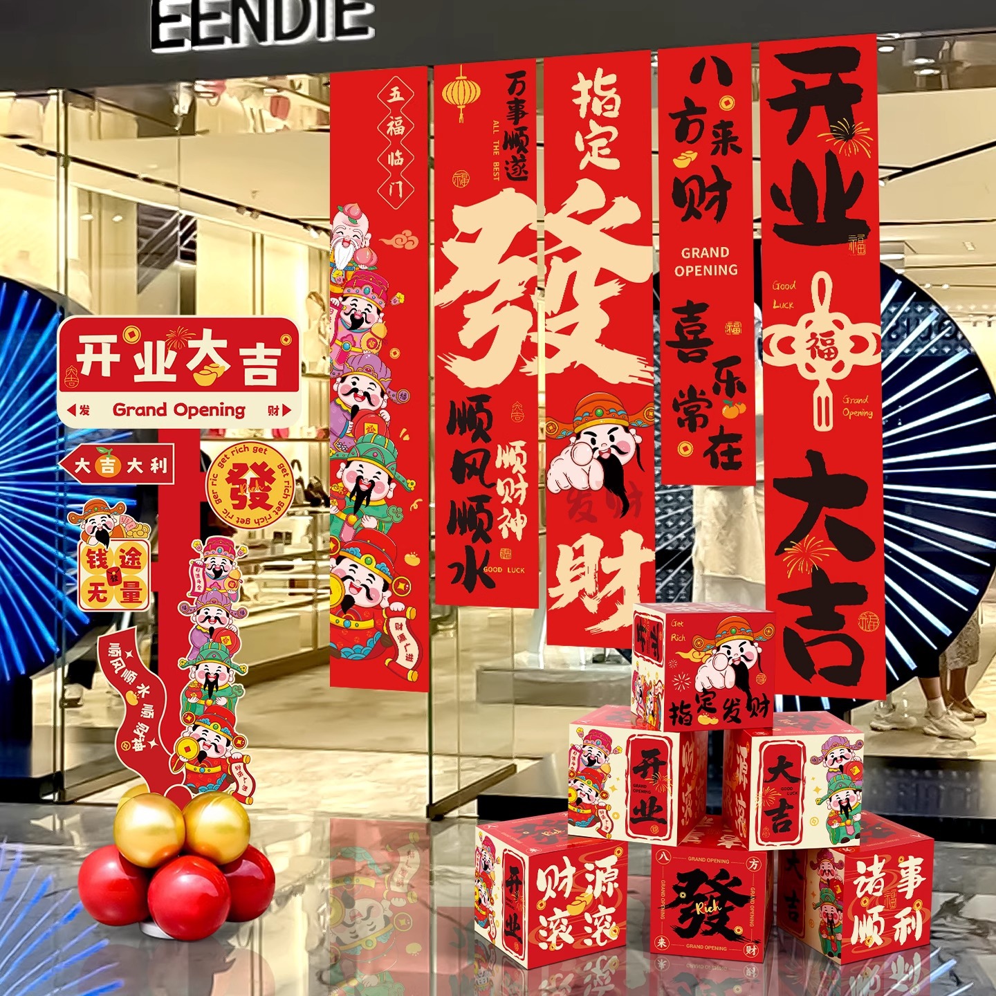 开业大吉气氛布置门店氛围地堆头盒条幅气球全套生意兴隆摆件装饰