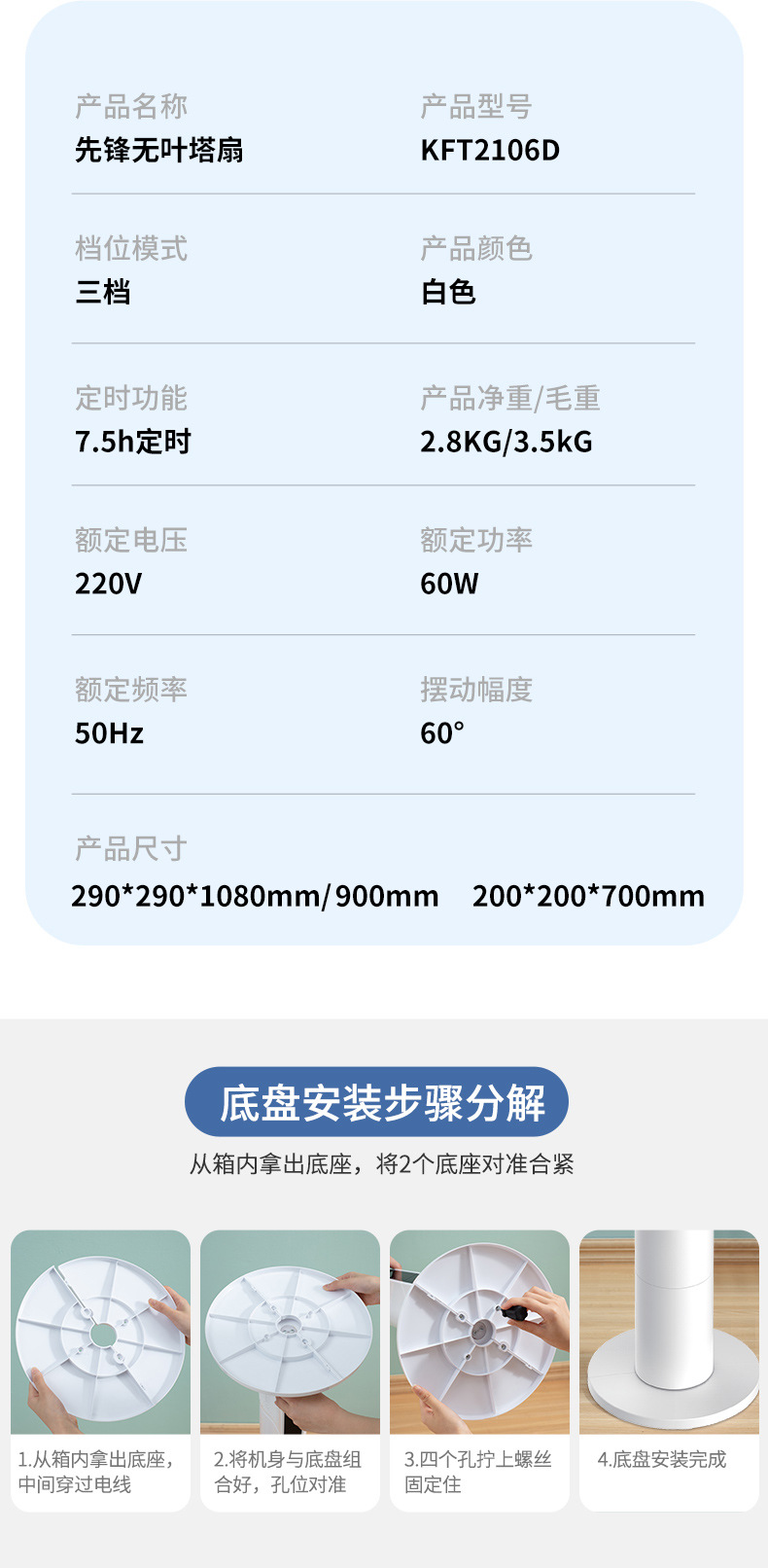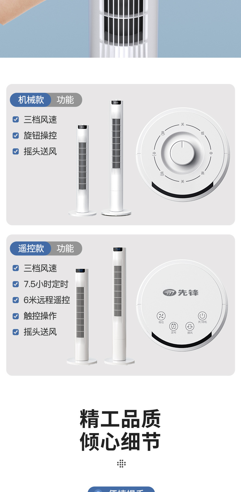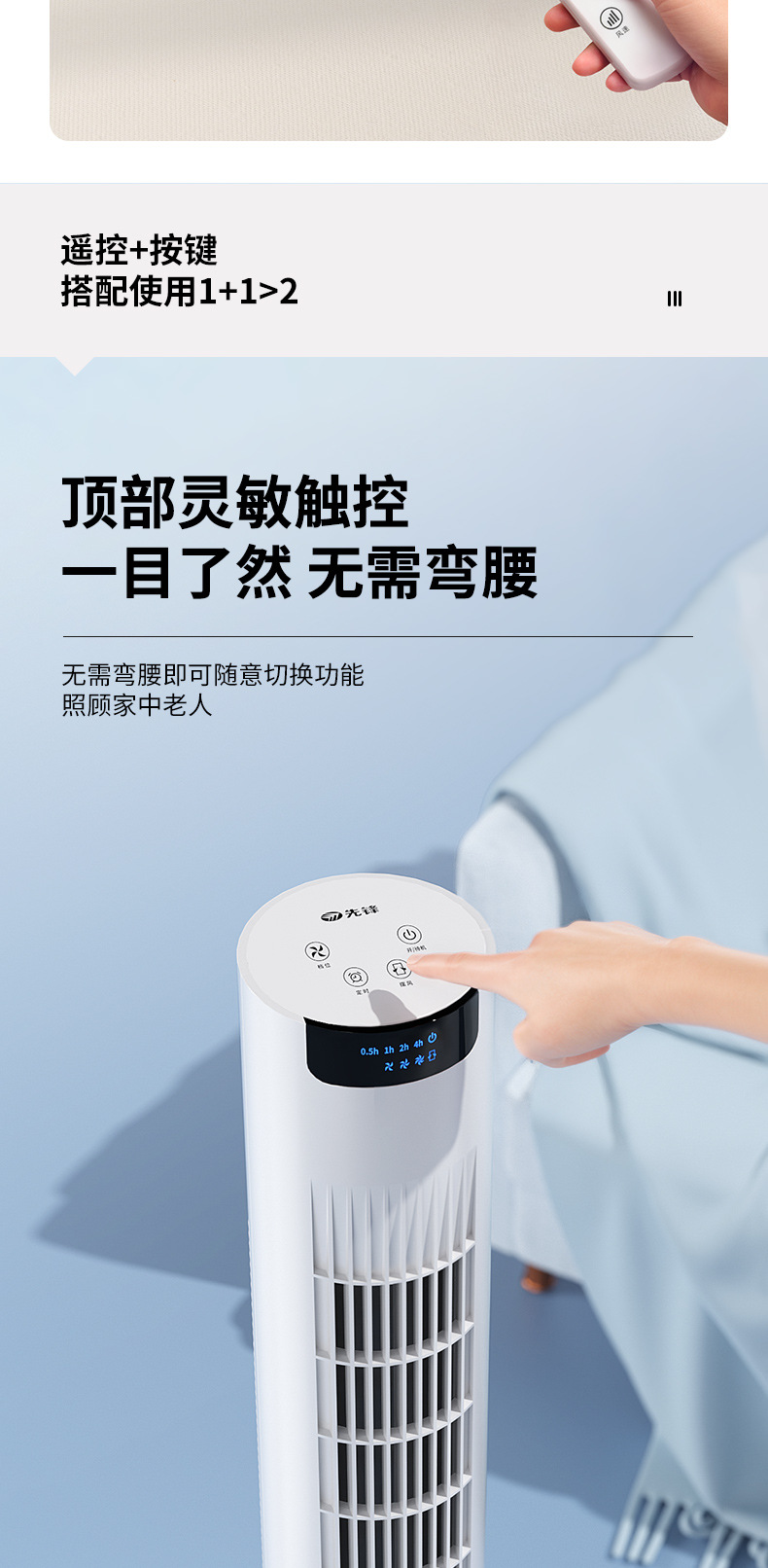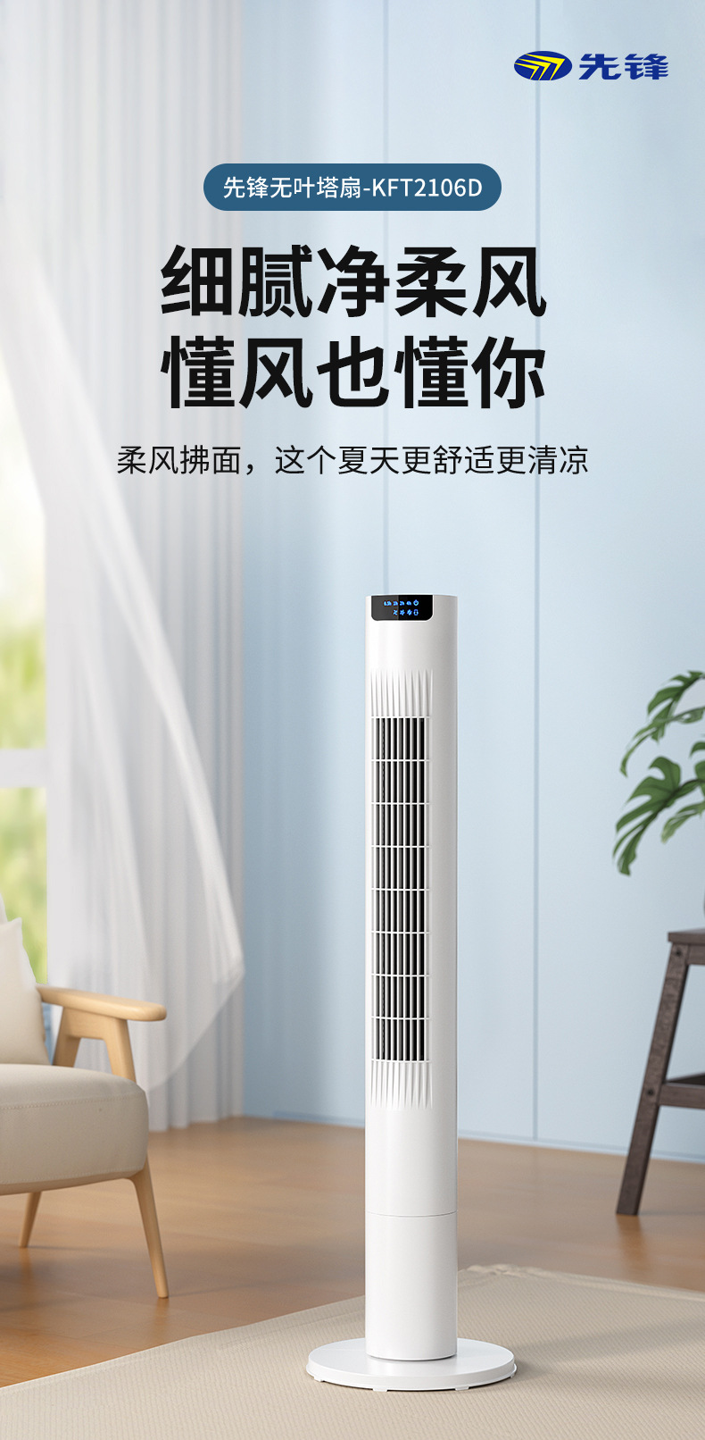 先駆者2025新型タワー扇風機家庭用無葉扇風機縦型軽音定時寝室首振り床扇