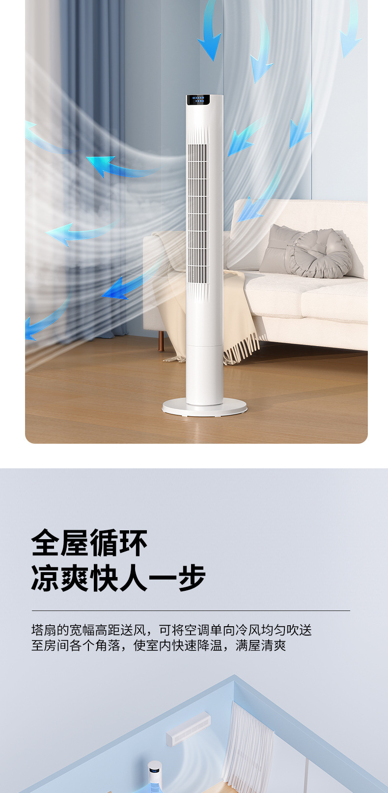 クロスボーダー扇風機家庭用タワー扇風機床置き扇風機首振り無葉扇風機塔式静音縦型無ページ卓上扇風機