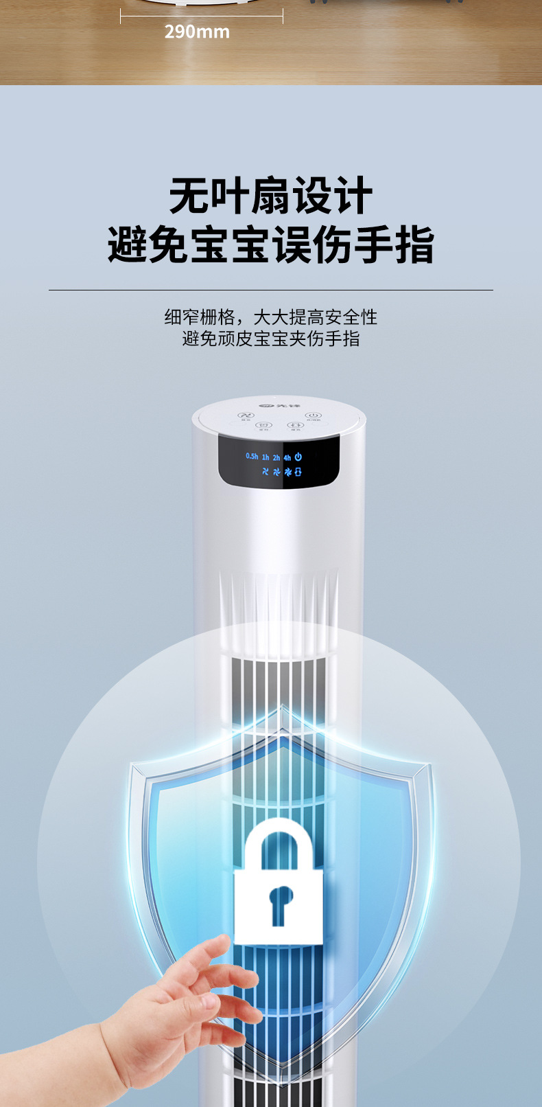 Meiling タワーファン電動ファンブレードレス家庭用光音省エネ垂直タワータイミング寮強風シェーキングヘッドフロアファン
