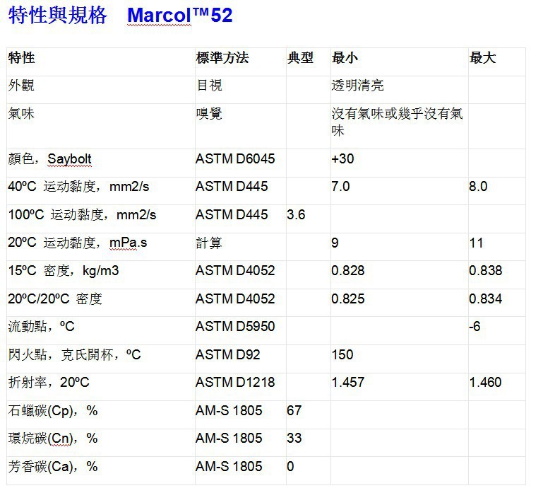 对于配方专家而言,Marcol 52具有许多实际优势,包括: