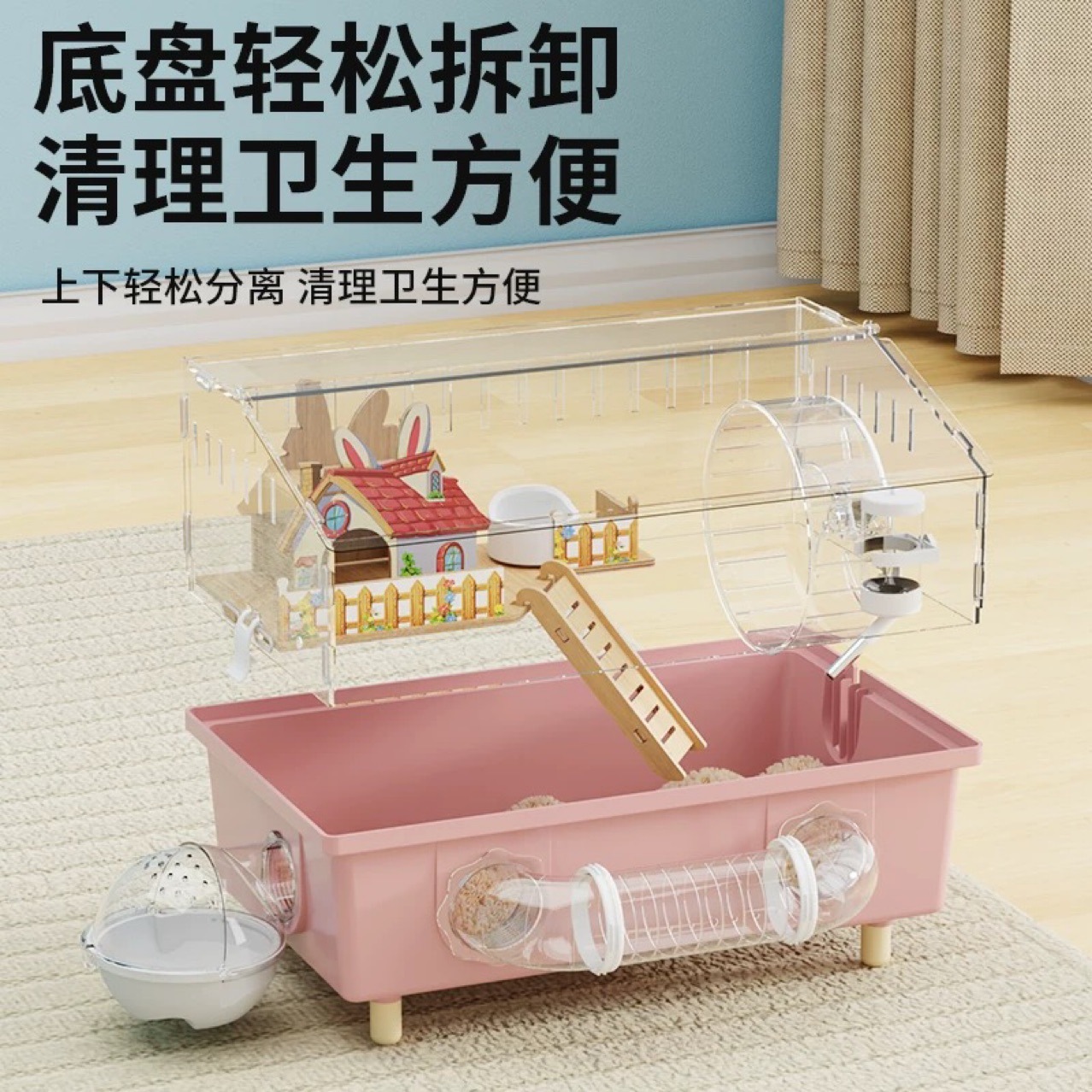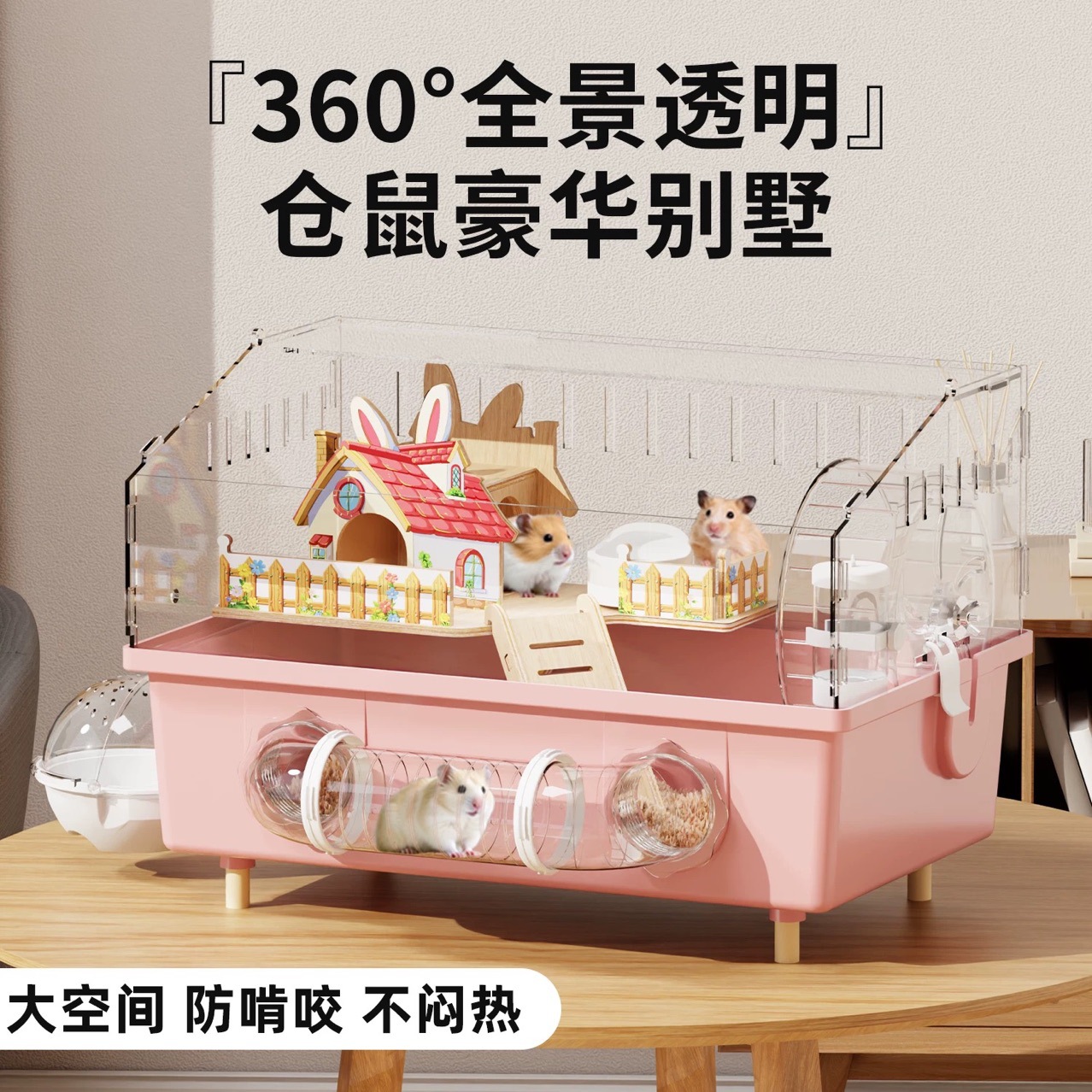 ハムスターの豪華な大型ケージ、噛みつき防止、脱獄防止、家庭用小型ハムスター、三線ミルクティー、ゴールデンベアヴィラ、お手入れ簡単