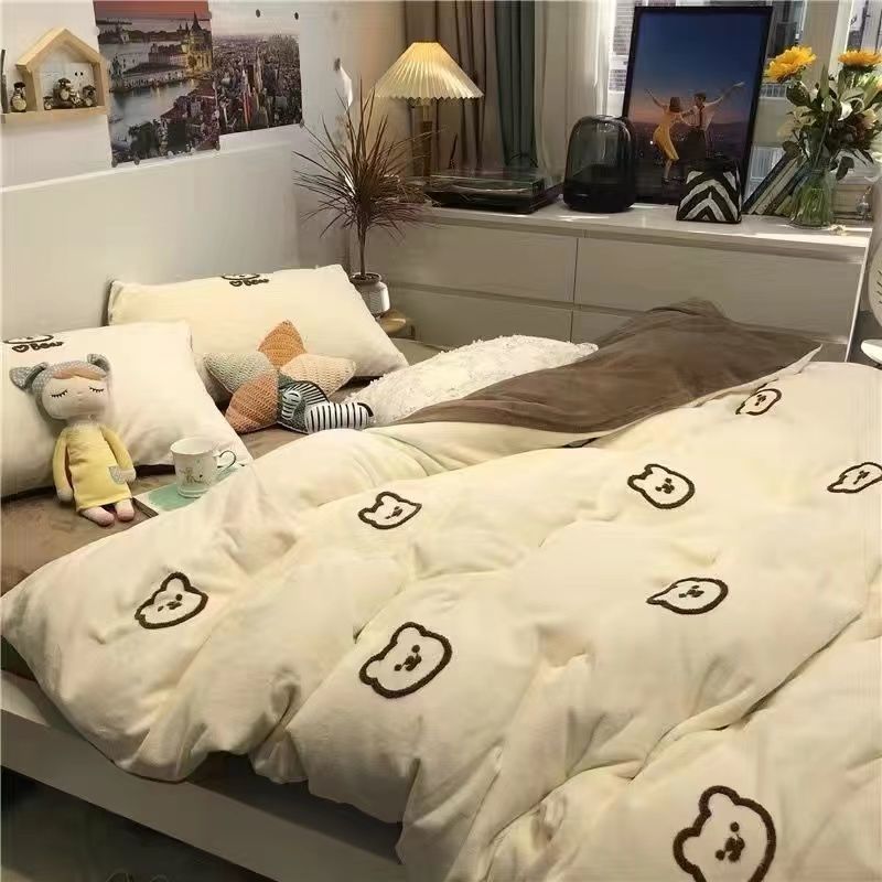 简约四件套水洗棉床单被套床上用品学生宿舍三件套ins床单款被罩
