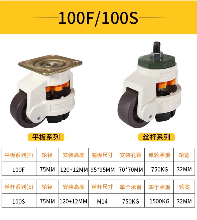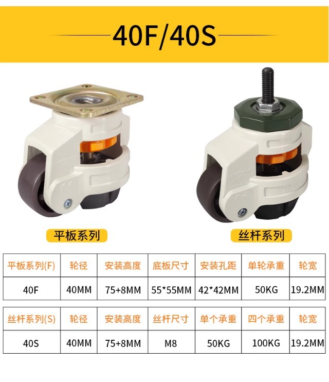 朗易万向輪40f福馬輪60f水平調整輪100f120fキャスター重荷重強化