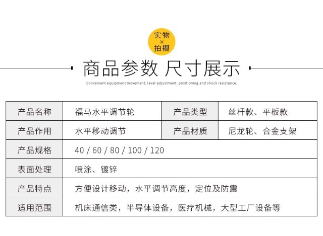 水平調整輪60F80F100F120F150F調整輪福馬輪精密設備専用キャスター