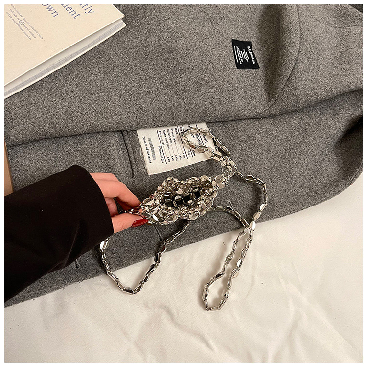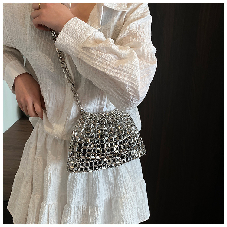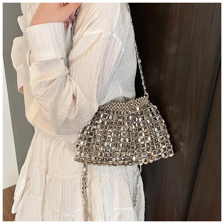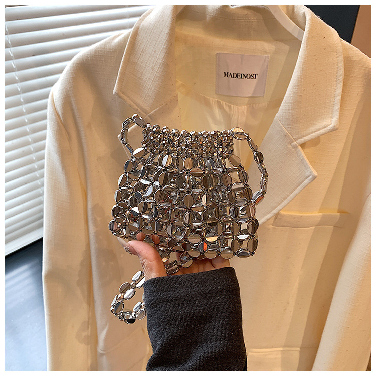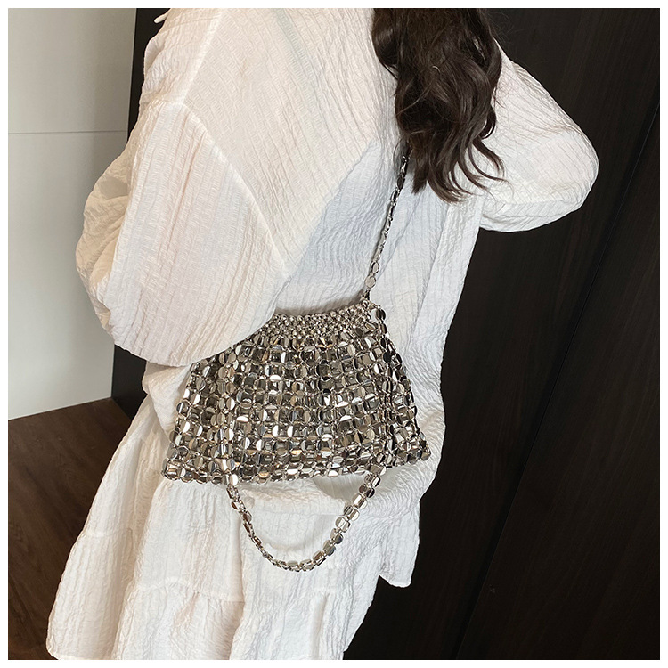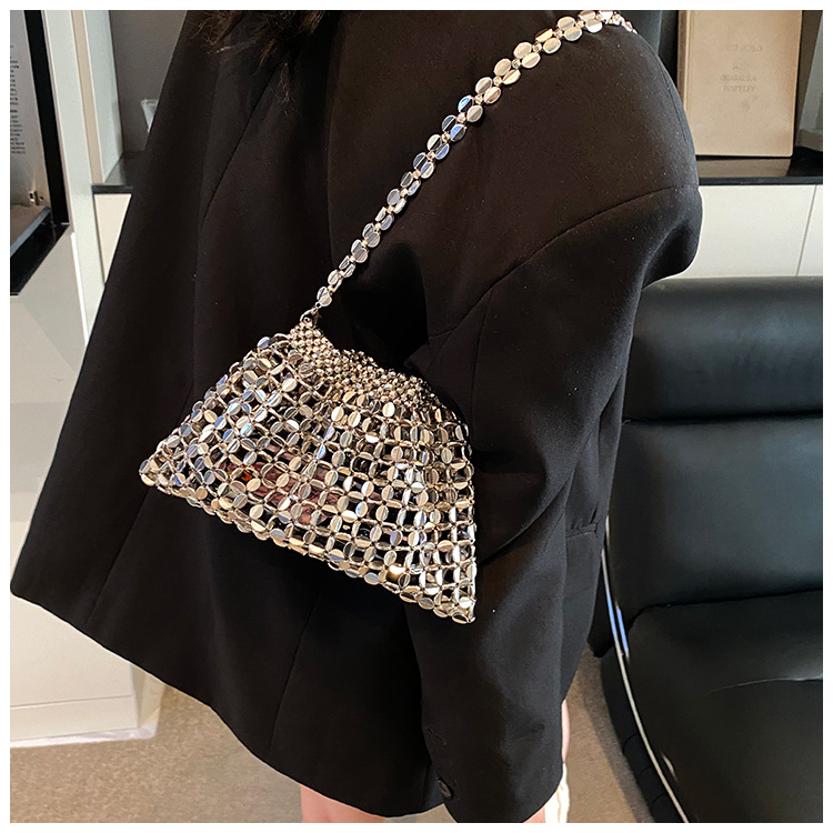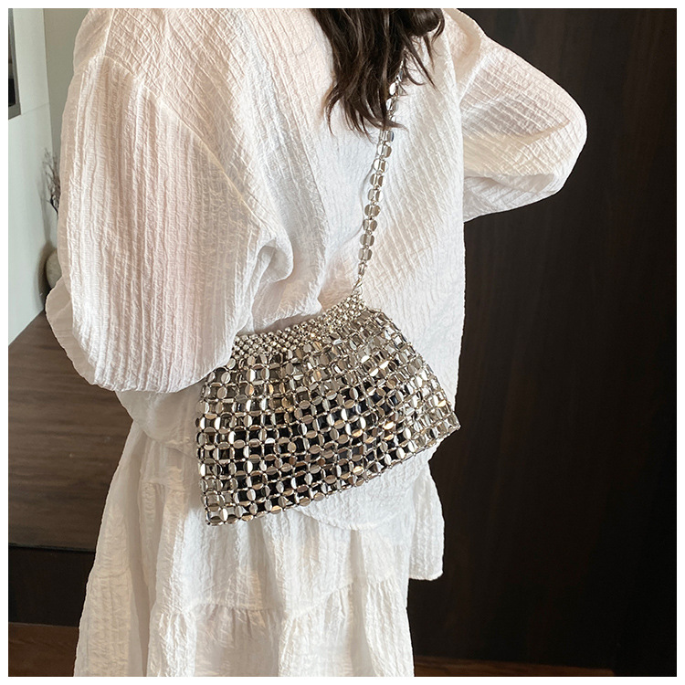韓国版シンプルな女性の腋の下に手作りのビーズチェーンを編むハンドバッグ2025新型通勤女性バッグ