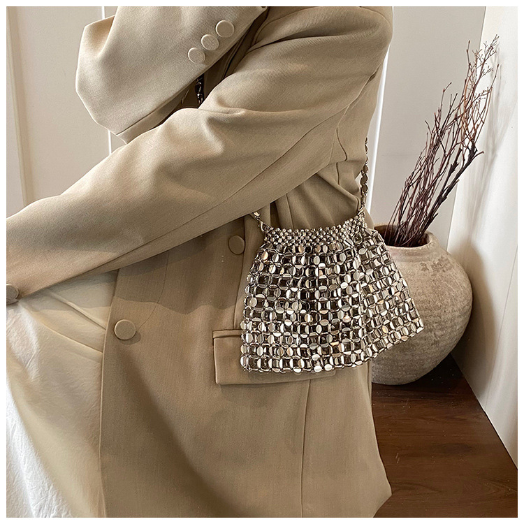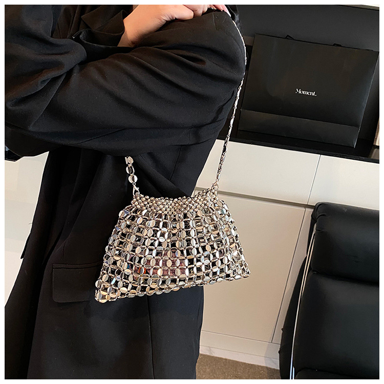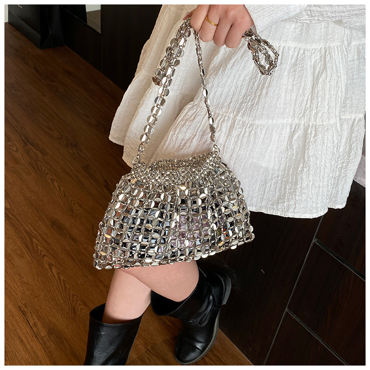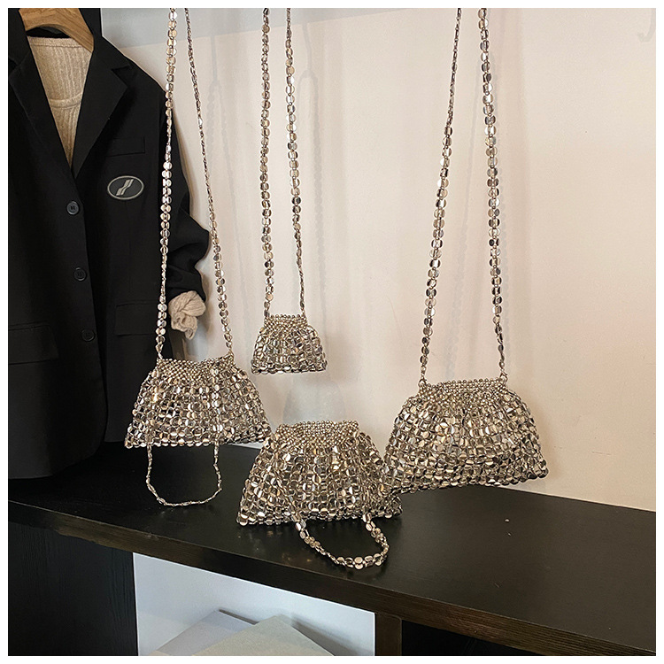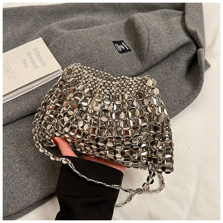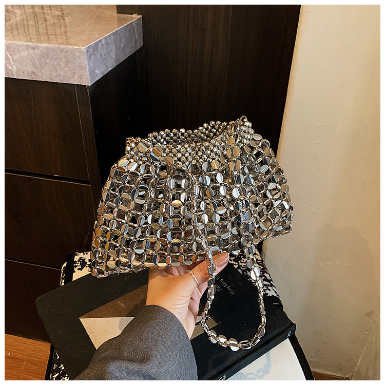 新しいキラキラしたレトロなスパンコールバッグ手作りのビーズを編むファッション