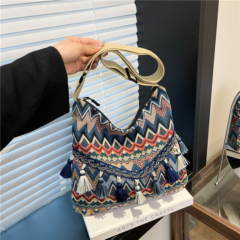 2025春季新款大容量时尚民族风休闲包百搭单肩斜挎包小众旅游背包