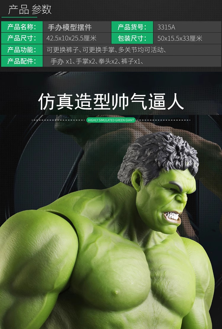 复仇者联盟大号绿巨人无敌浩克玩具动漫手办摆件关节可动模型散货