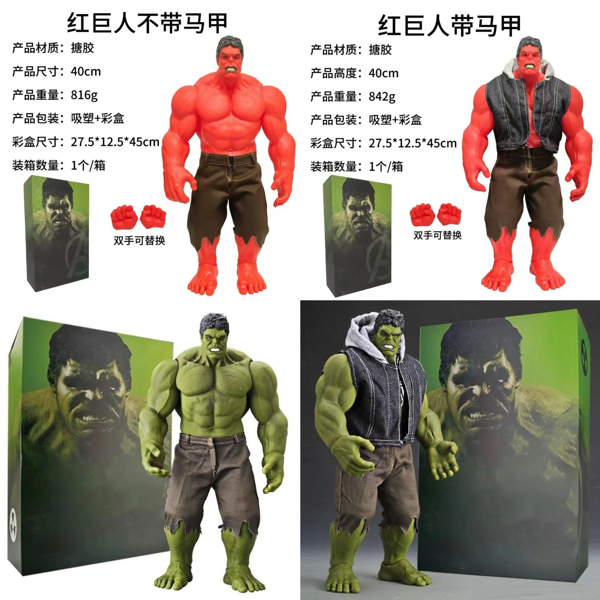 爆款42cm55cm绿巨人漫威浩克复仇者联盟超级大号手办礼物摆件模型