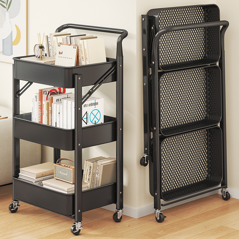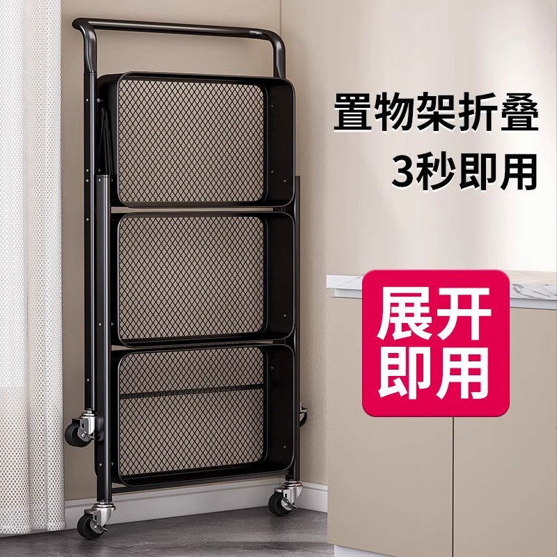 新款碳钢小推车折叠多层储物架置物架可移动厨房卧室零食收纳推车